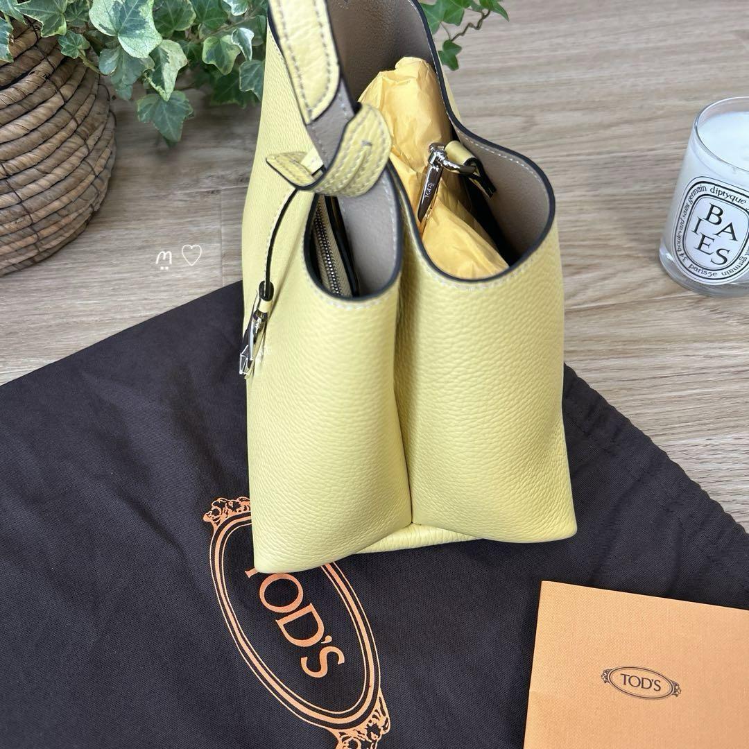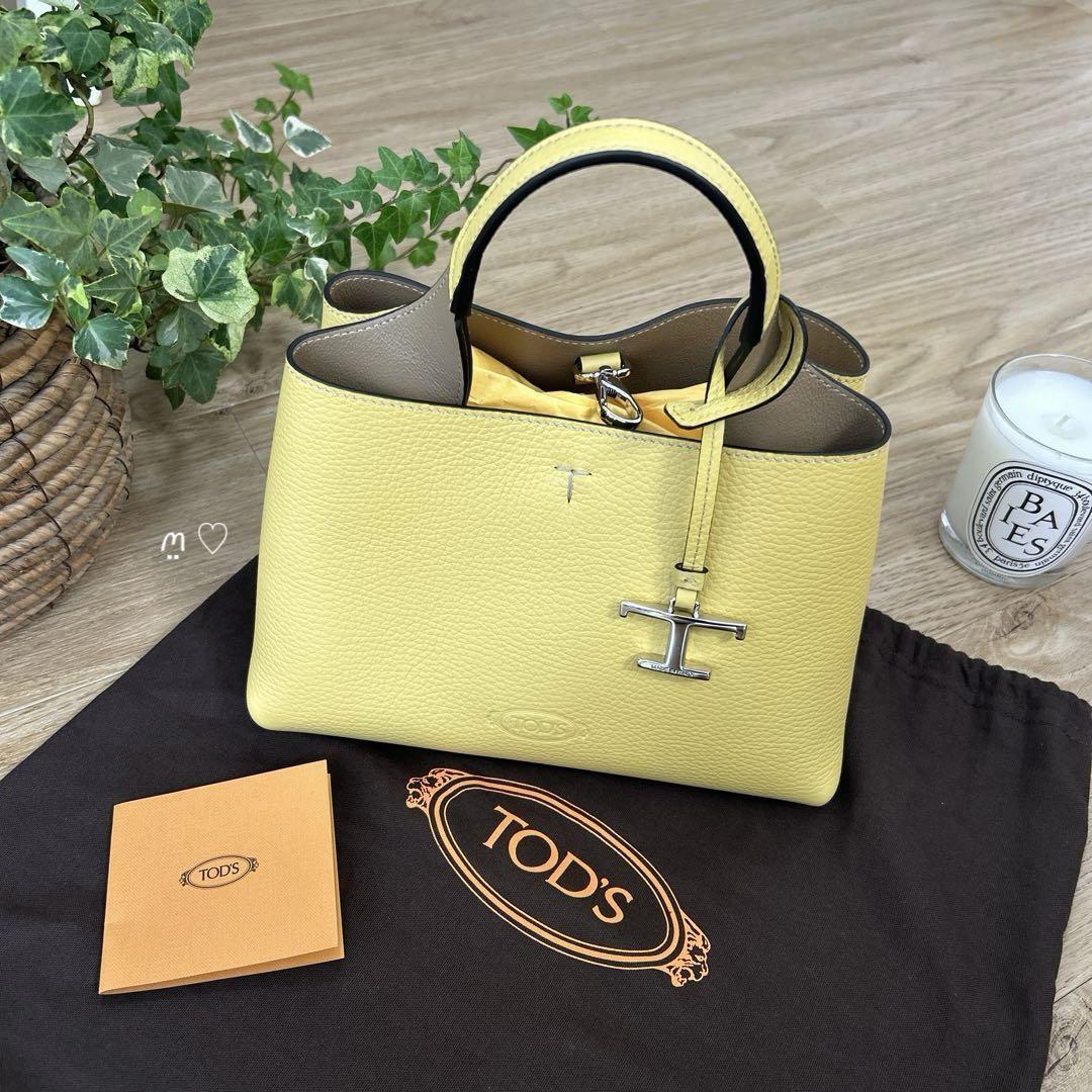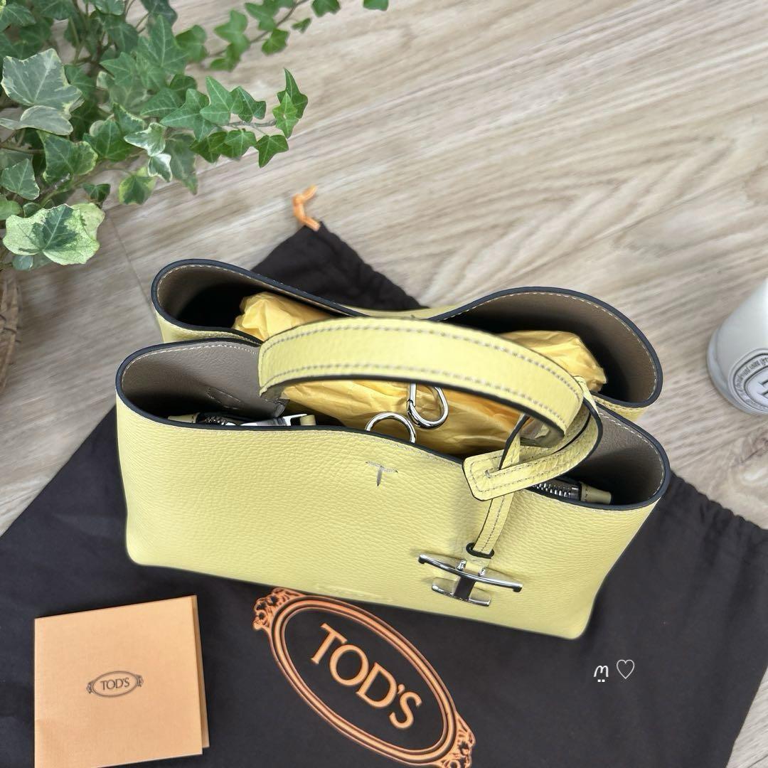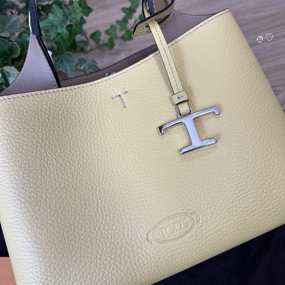 フロントにはTステッチのディテールとロゴのホットスタンプ、メタルペンダントをあしらい、トッズならではのアイコニックなディテールが光るエレガントなスタイルです。