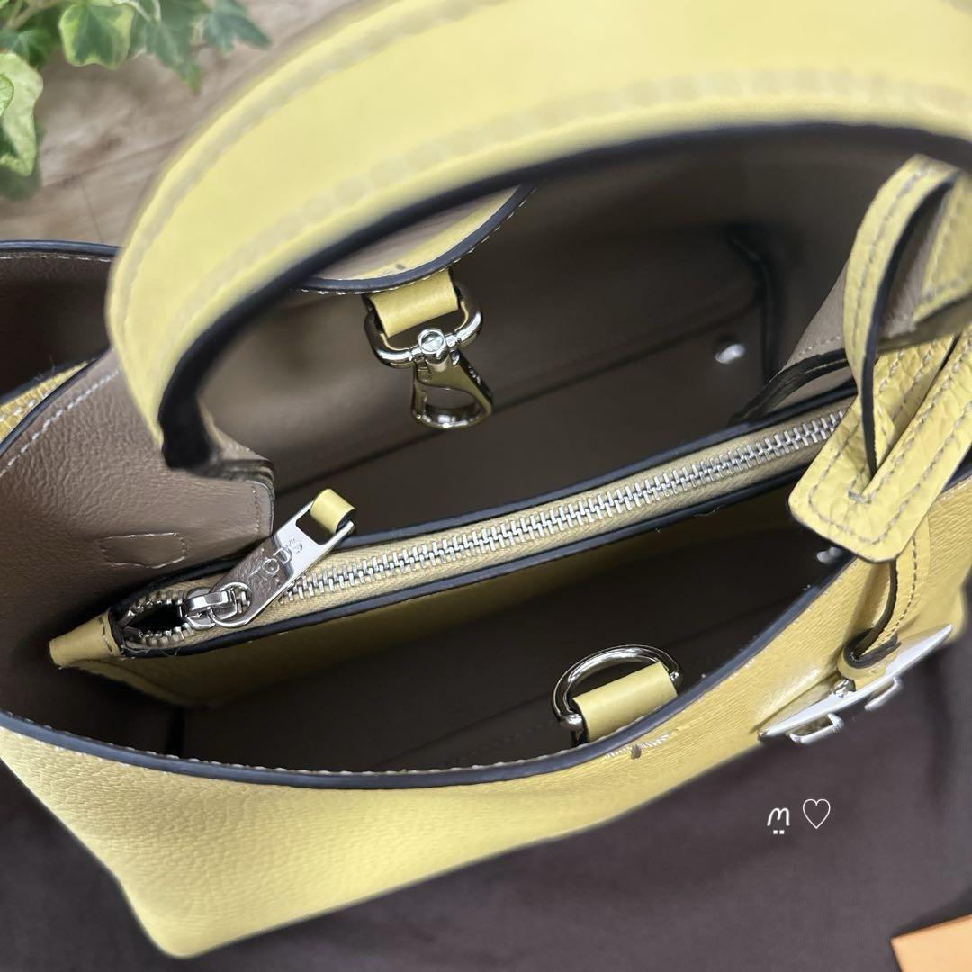グレインの美しさが際立つ柔らかなレザーのバッグ。
