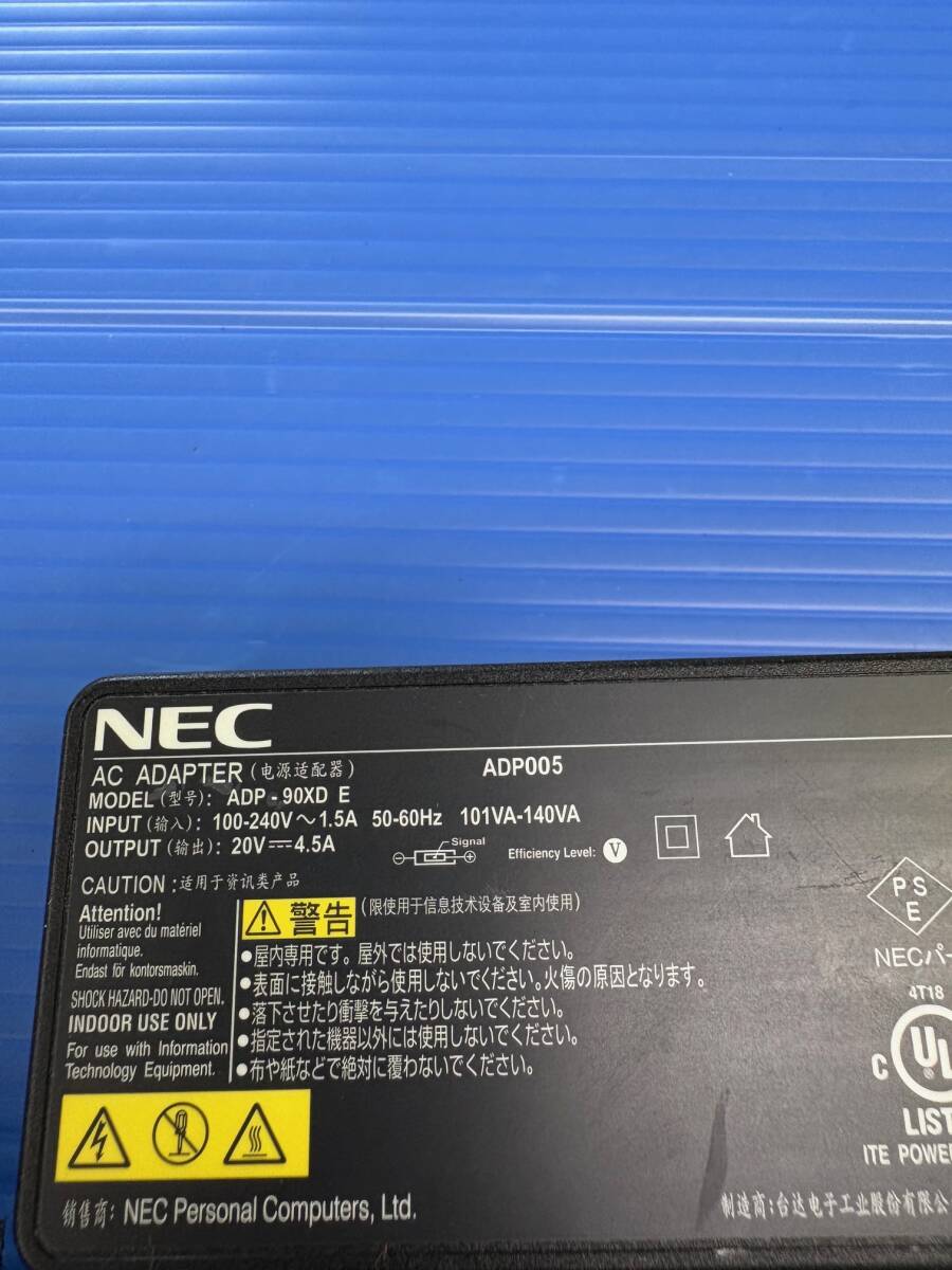 NEC 純正 ACアダプタ ADP-90XD E(ADP005) PC-VP-WP138 20V 4.5A 角型 (3