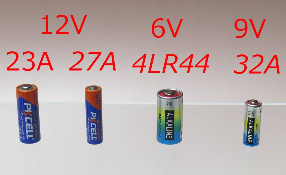 6Vの4LR44(12.3×25mm)、9Vの32A(7.8×22mm)