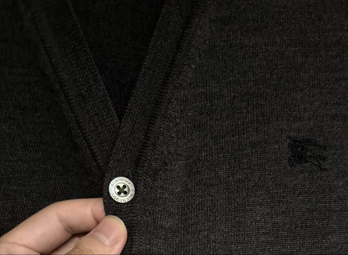 光沢感のあるブラックシェルボタンにロゴが刻印されており、高級感があります。