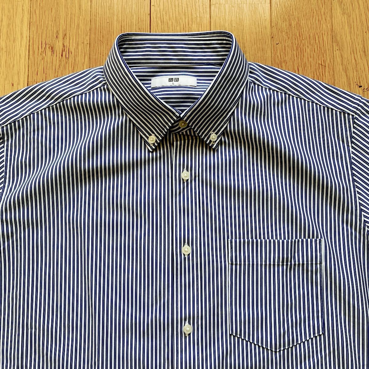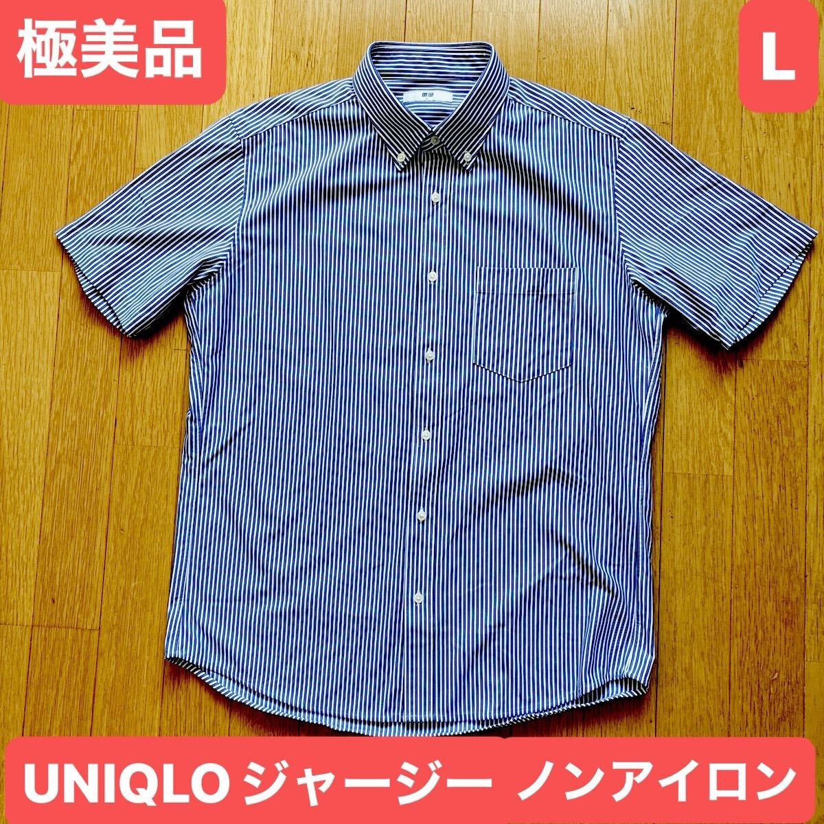 | 極美品 ユニクロ UNIQLO ジャージー ノンアイロン 半袖 ストライプ シャツ サイズL | |||
