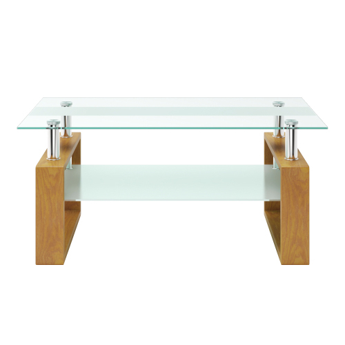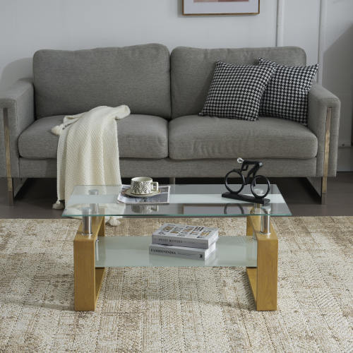 ガラステーブル ローテーブル コーヒーテーブル 幅87.5x奥47.5x高さ39.5cm 収納棚 口字型のテーブル脚 強化ガラス天板 クリア棚 おしゃれ