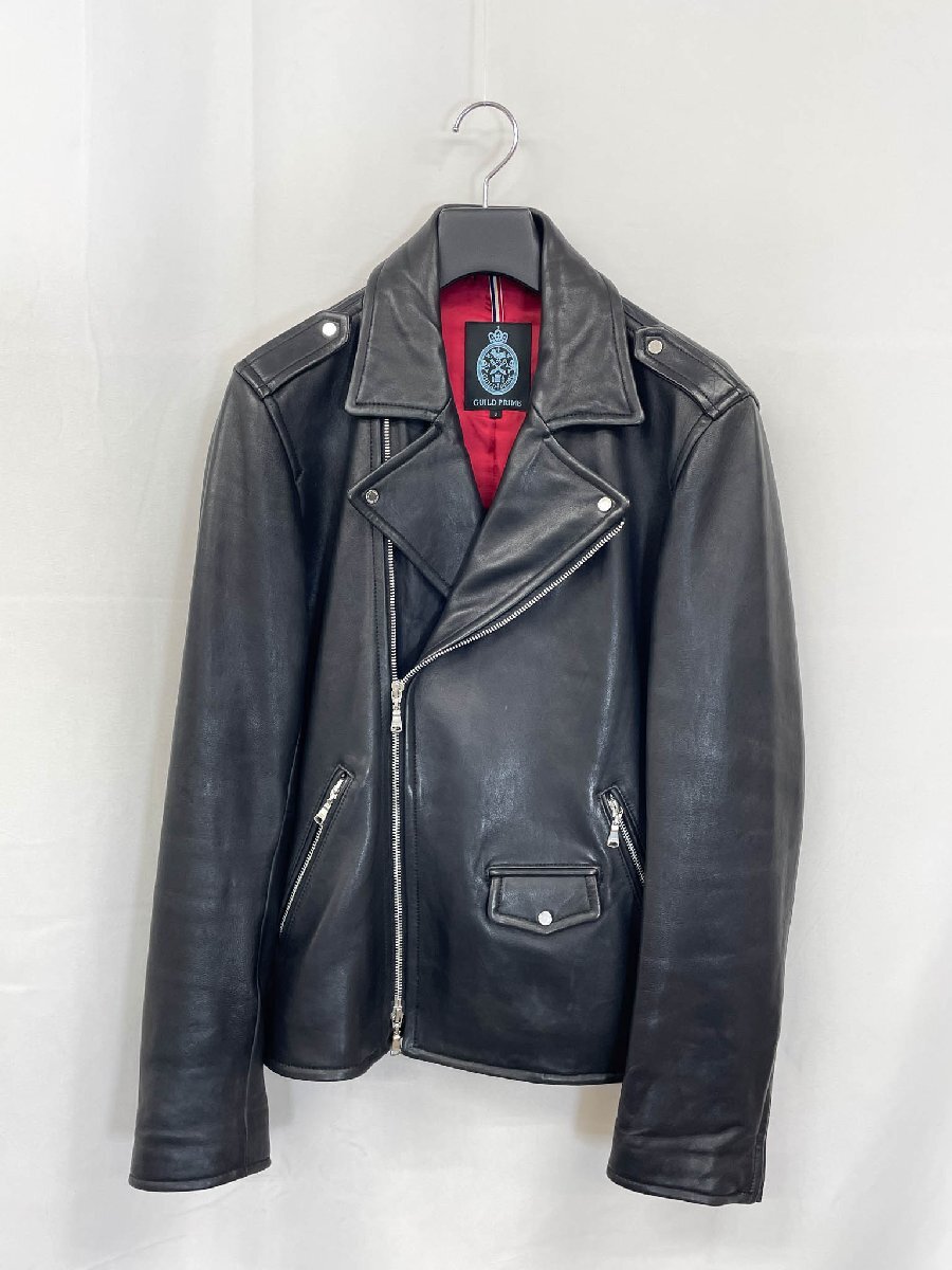 美品【ギルドプライム GUILD PRIME】71F01-410-09 ラムレザー ダブルライダースジャケット (メンズ) 3 ブラック バイカー ◇32MB4974◇