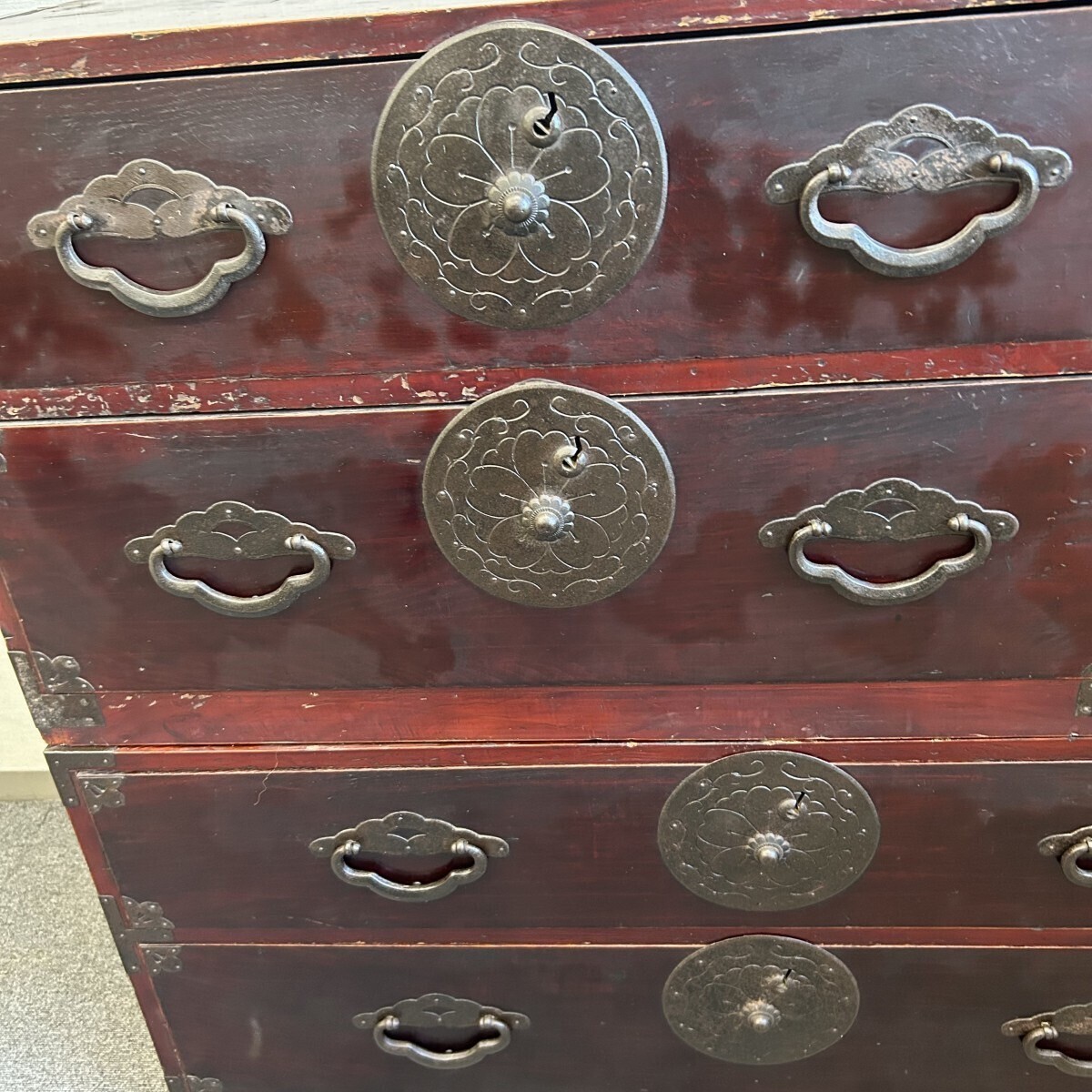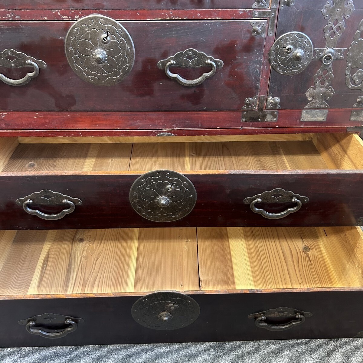 米沢箪笥 桜紋章 時代箪笥 和製アンティーク インテリア 家具 タンス パレット発送