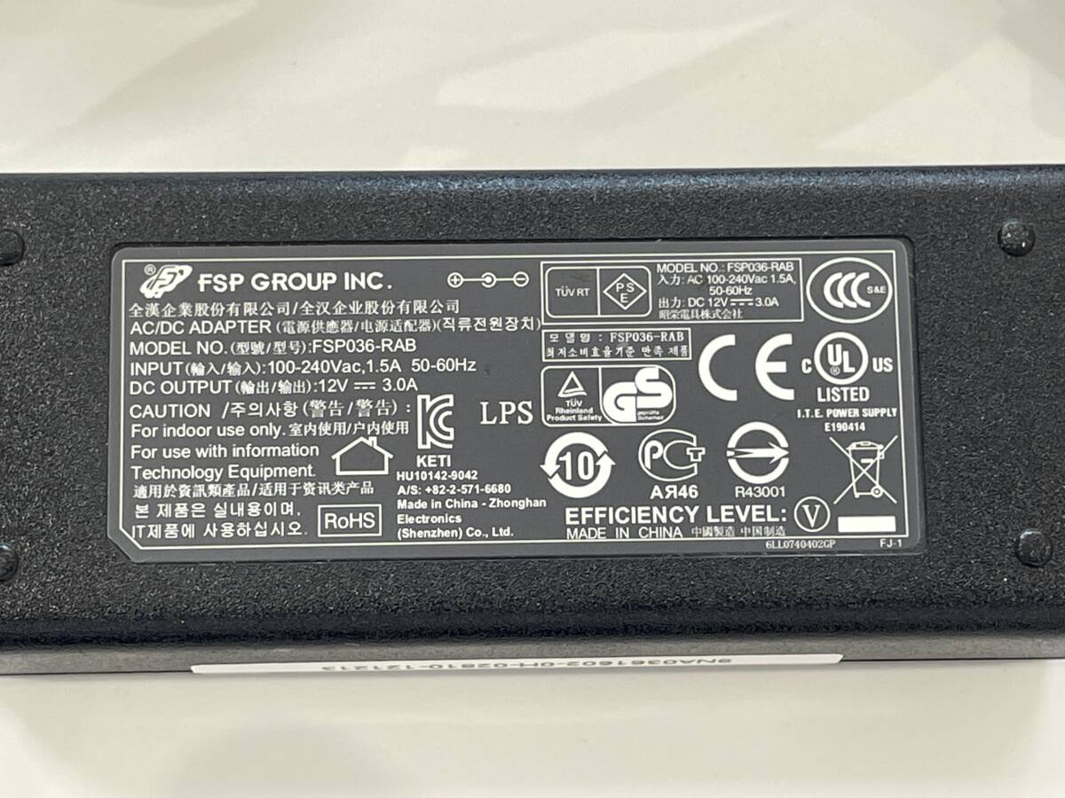 ★【ACアダプター】FSP FSP036-RAB 適応:ネットワークHDD QNAP TS-112 他・Fortinet FortiGate 等 出力:DC12V 3A★動作品