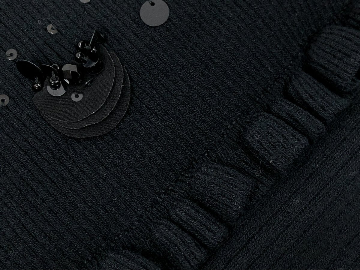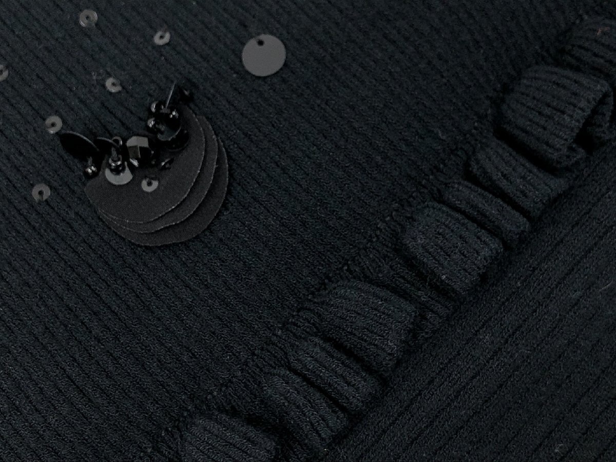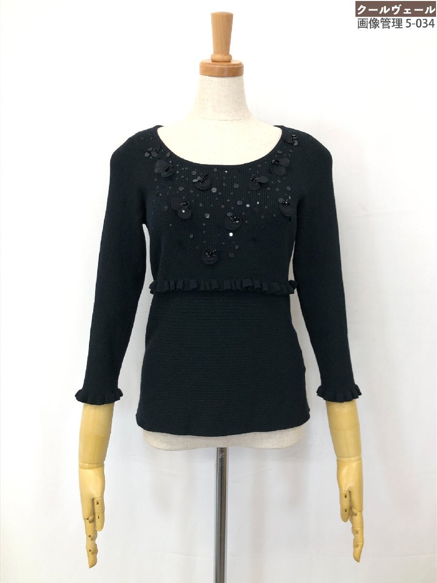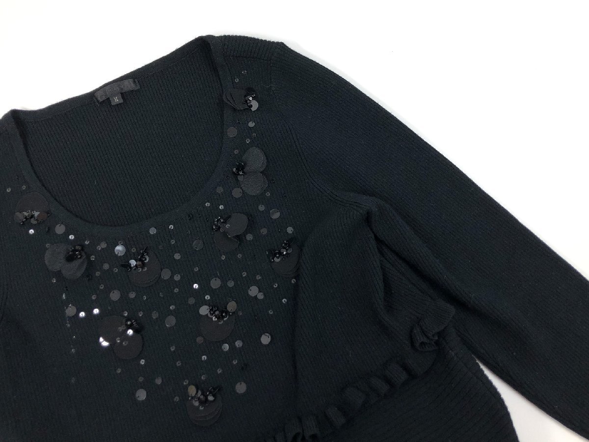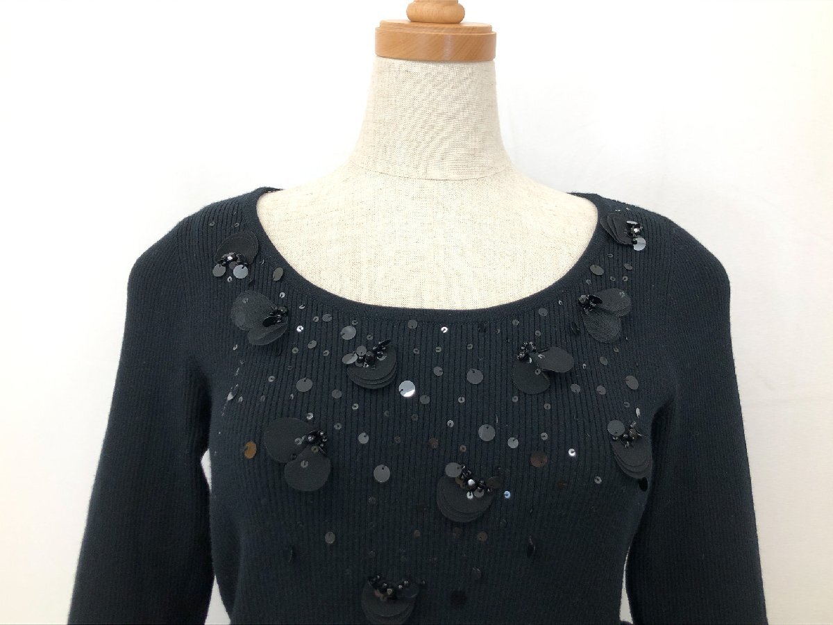 超美品【TO BE CHIC トゥービーシック】W5N63-642-09 スパンコール装飾 長袖 リブ編みニット (レディース) size2 ブラック ◇17LN6014◇