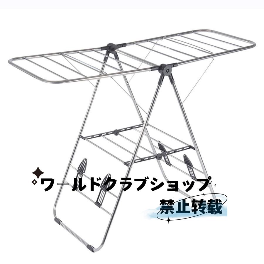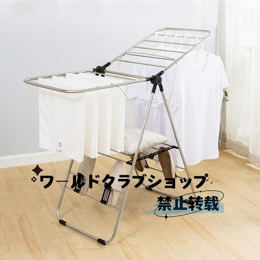 折りたたみ 物干しスタンド 洗濯物干し 布団干し 靴掛け付き ステンレス製 高さ調節可能 組立不要 多機能 乾燥ラック 省スペース 頑丈