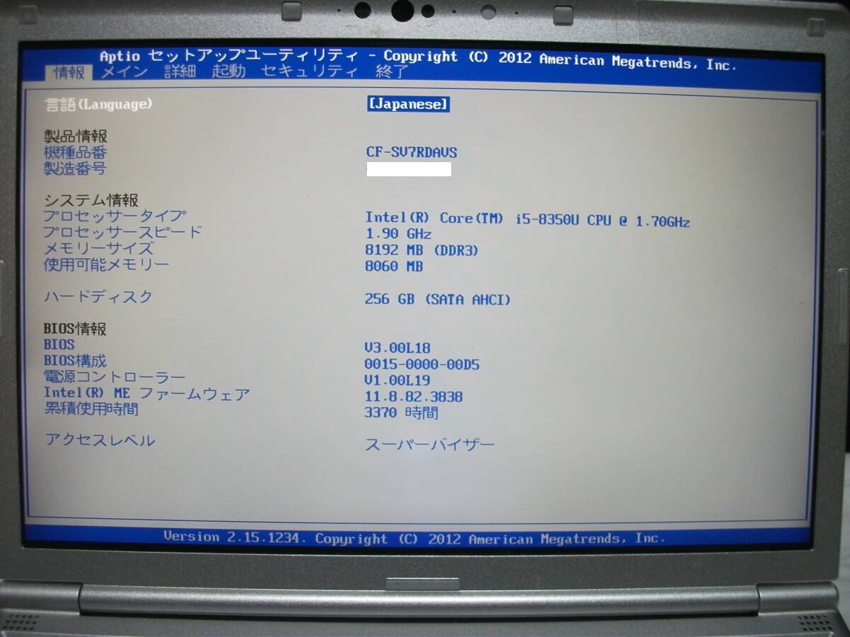 Win11 Panasonic Let's note CF-SV7RDAVS/Corei5/8GBメモリ+SSD256GB/マルチ/Office2021(284)