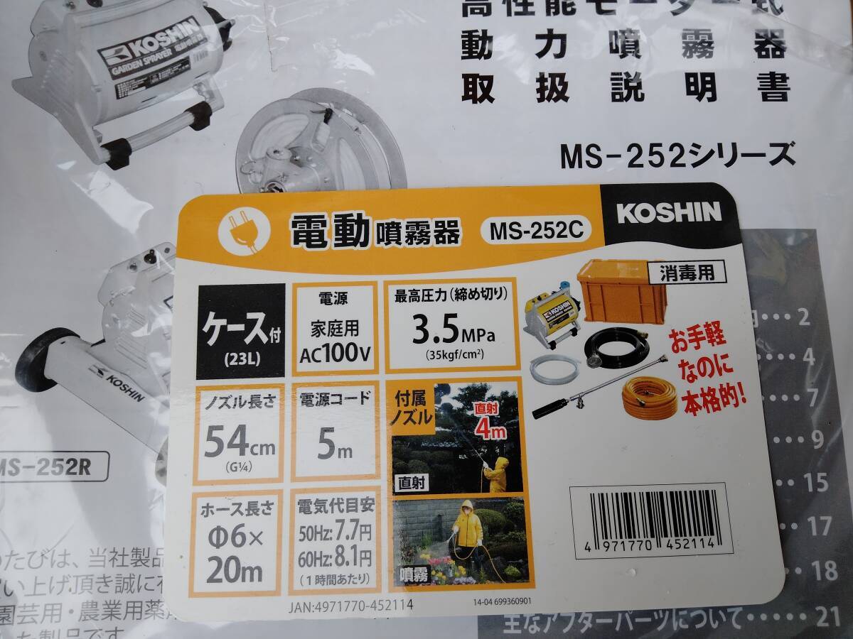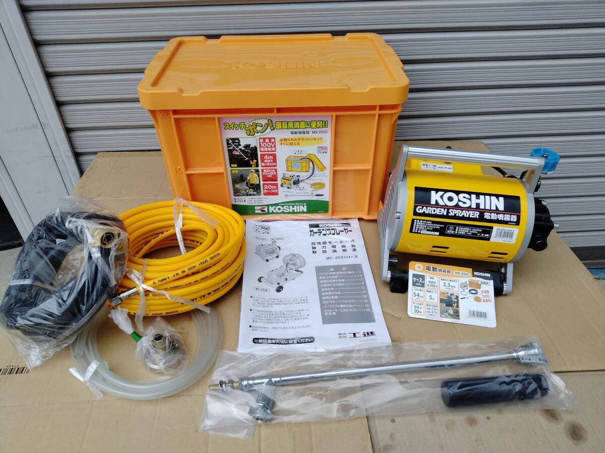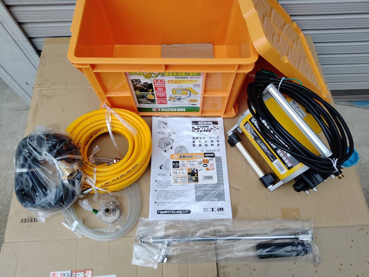 【新品未使用】工進ポンプ製作所モーター動噴MS-252C電動モーター100vタイプコンパクトです20mホース、散布ノズルもセットです写真画像写っている物全てです。エアコン洗浄にも