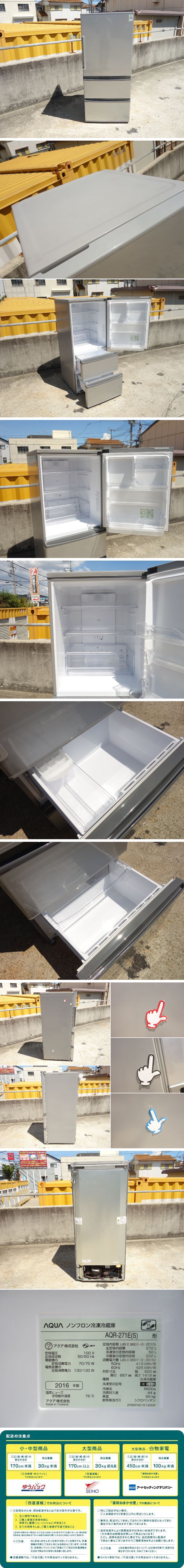 【中古】M▽アクア 冷蔵庫 272L 2016年 3ドア 人気容量 ロータイプ 耐熱性能天板 シルバー AQR-271E (27859)