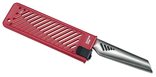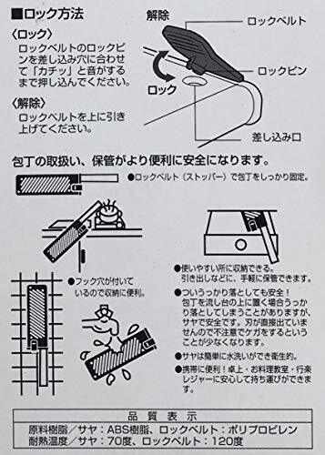 ・レッド 60×195×11mm UH-4704・・Color:レッド・製品サイズ:(約)60×195×11mm・材質:サヤ/ABS樹脂(耐熱温度70度)、ロックベルト/ポリプロピレン(耐熱温度120度)・適用包丁:牛刀型(洋包丁)・三徳型(万能包丁)・薄刃型(菜切包丁)・包丁適用サイズ(刀身):(約)刃の長さ185mmまで(切刃も含む)、刃の幅40~55mmまで、刃先の幅52mmまで、柄側の刃の厚み4mmまで、刃先の刃の厚み2.5mmまで・注意:※包丁・ナイフの刀身等、形状・厚みによって使用できない場合もあります。また適用以外の包丁・ナイフには使用しないでください。説明 製品サイズ:(約)60×195×11mm 材質:サヤ/ABS樹脂(耐熱温度70度)、ロックベルト/ポリプロピレン(耐熱温度120度) 適用包丁:牛刀型(洋包丁)・三徳型(万能包丁)・薄刃型(菜切包丁) 包丁適用サイズ(刀身):(約)刃の長さ185mmまで(切刃も含む)、刃の幅40~55mmまで、刃先の幅52mmまで、柄側の刃の厚み4mmまで、刃先の刃の厚み2.5mmまで 注意:※包丁・ナイフの刀身等、形状・厚みによって使用できない場合もあります。また適用以外の包丁・ナイフには使用しないでください。 原産国:日本 アウトドアでの、包丁の持ち運び・保管が、便利に安全になります。 家庭で使用している包丁をキャンプやバーベキューに安全に持ち運べる。 【ご使用方法】 包丁サヤのロックベルトをはずして、適用する包丁を入れる。 カチッと音がするまでロックベルトをしっかりロックする。 フック穴が付いているので、洗浄後引っ掛けて乾かすことが出来る。