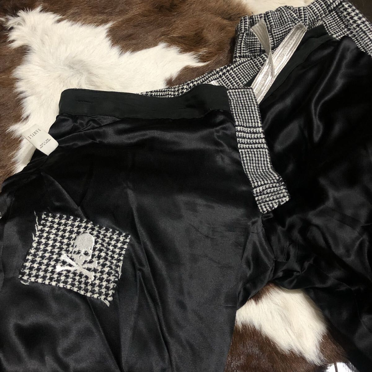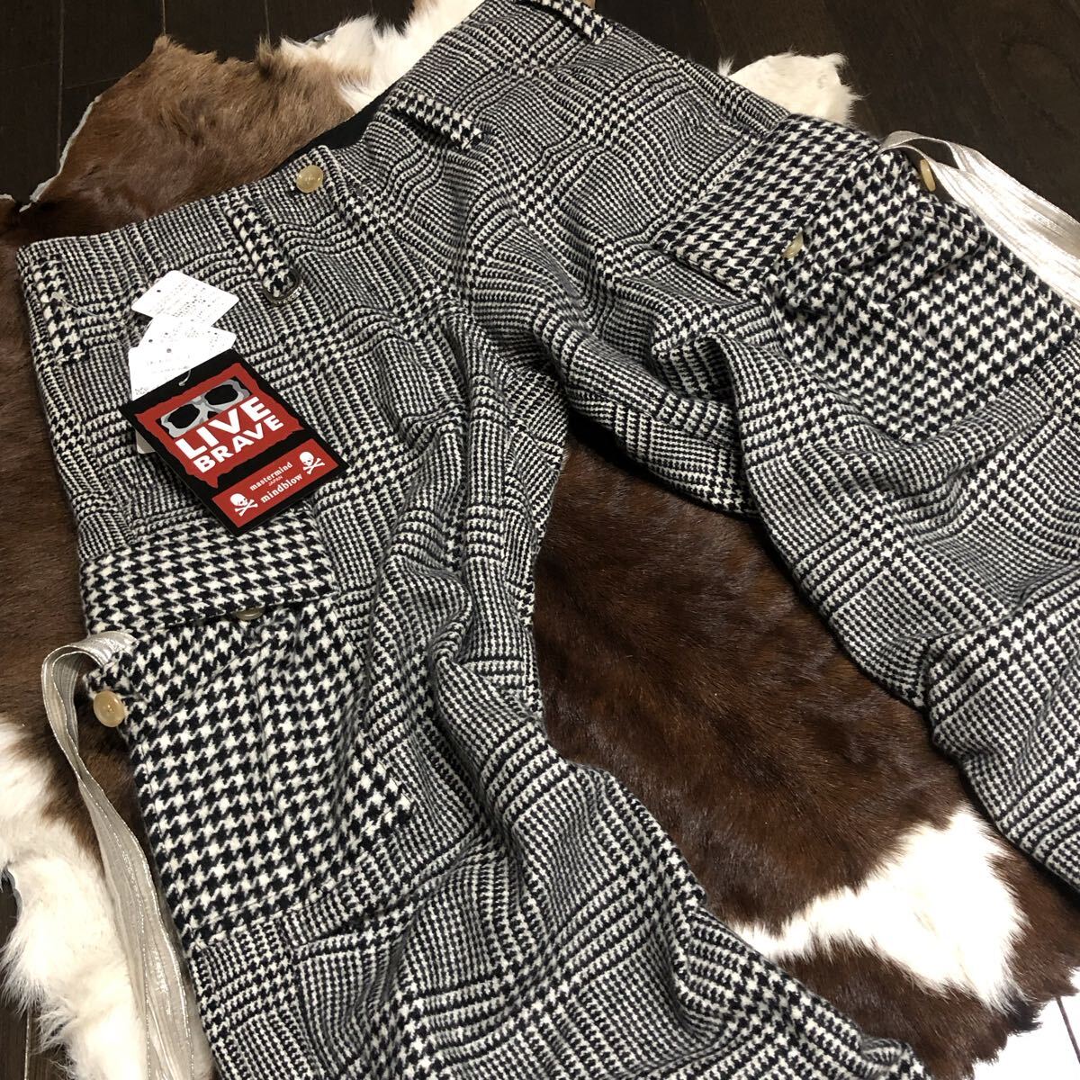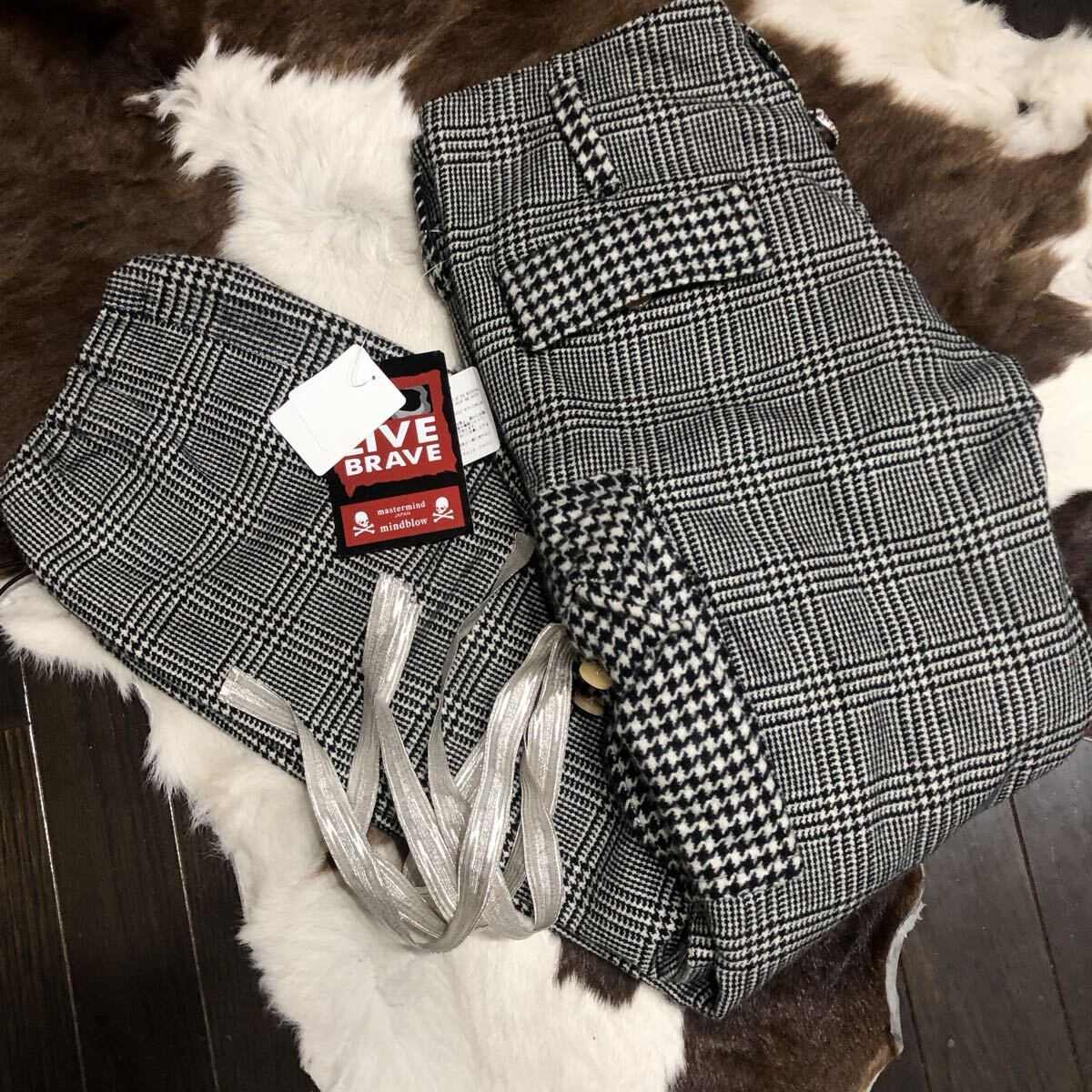 | mastermind JAPAN (マスターマインドジャパン) カシミヤ100% ランダム・グレンチェック柄 イージーカーゴパンツ 黒系 |