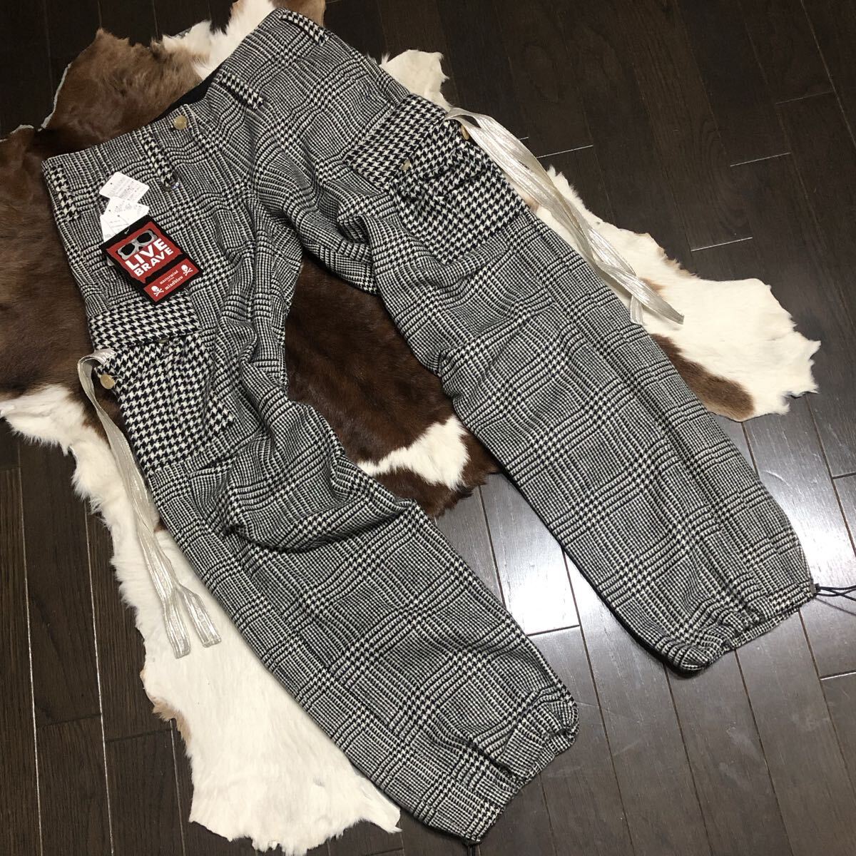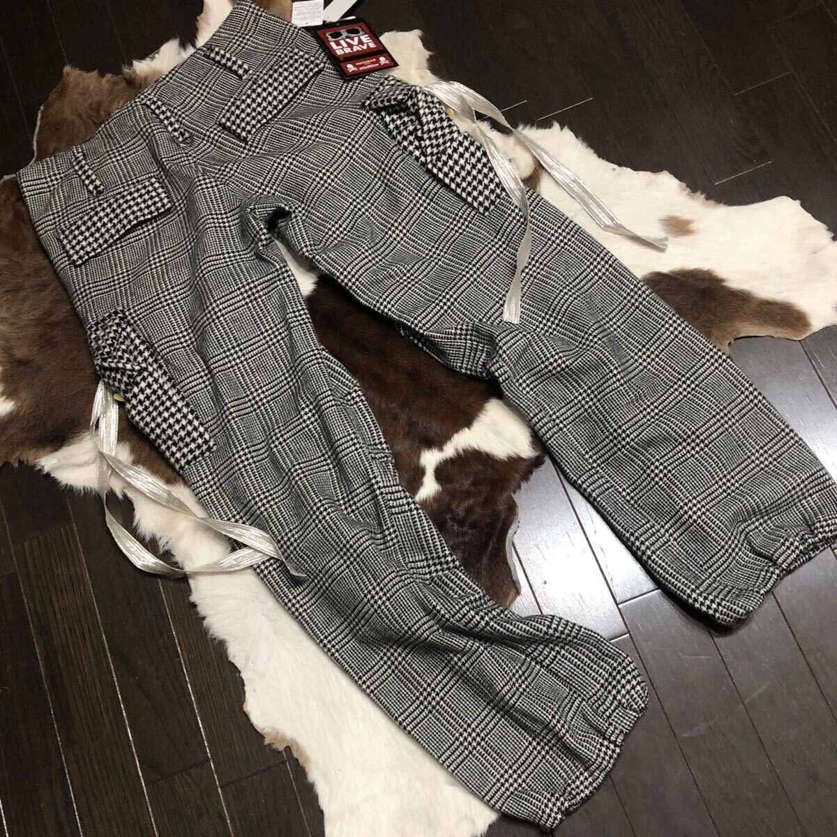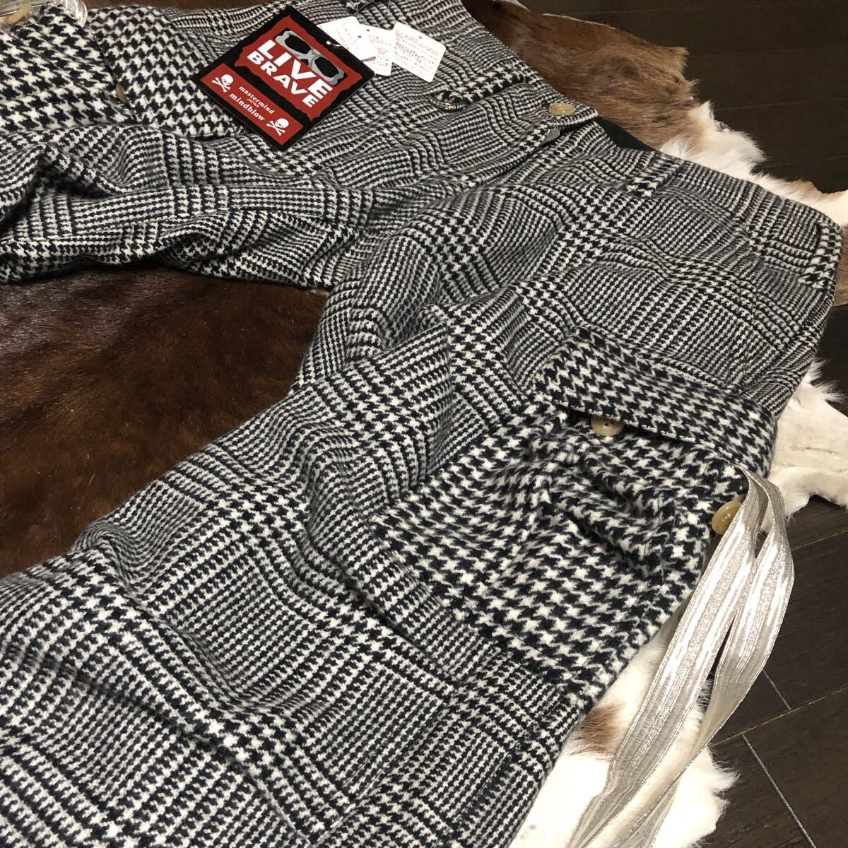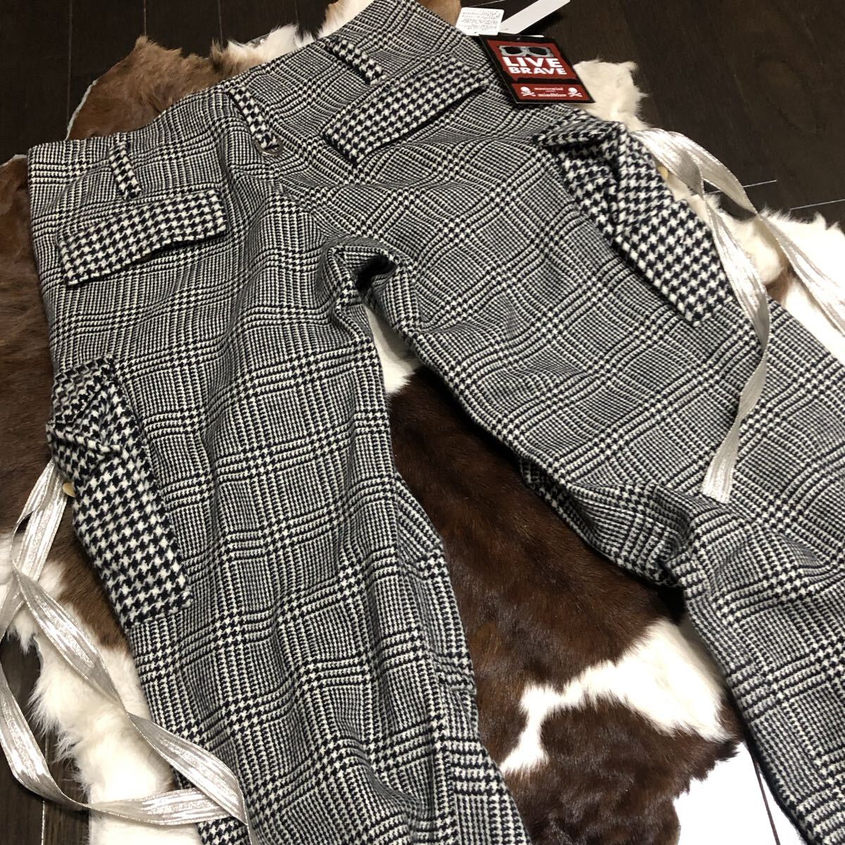 | mastermind JAPAN (マスターマインドジャパン) カシミヤ100% ランダム・グレンチェック柄 イージーカーゴパンツ 黒系 |
