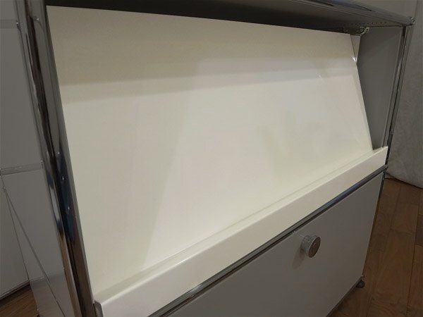 ご覧いただきましてありがとうございます。 USMハラーシステム用の純正部品「アングルシェルフ」です。 本、雑誌やパンフレットなどをユニット前面にディスプレイするための部品です。 画像内に、取り付け後を写した画像がございますが、部品単体での出品です。 サイズは75×35cmモジュールで、カラーは「ピュアホワイト」です。 固定金具付きです。 製造年代ごとに少しずつ仕様の異なる製品ですが、おそらく現行最新モデルかと思います。 コンディションですが、中古の状態で入手をしたものですが、特に目立つ大きなキズもなく良好です。 光をかざすと反射して見える程度のキズやごく間近で見るとわかるようなキズがございますが、ご使用時に気になるような大きなダメージはございません。 パネル表面の光沢感も残っており、全体的にきれいな印象です。 画像は代表的なキズを写したもので、転用しておりますので、画像=お届けする個体とはなりませんことご了承ください。 表面塗装の強いハラーですが、商品の性質上、細かなスリキズは避けられないものです。目についたスリキズなどはできる限り写真に掲載しましたが、その他気にならない程度の小キズはございますので、あらかじめご了承ください。 取り付けのサポートはいたしません。また、お持ちのユニットに取り付ける際、破損や不具合等が生じてもいっさいの責任は負いません。ご自身の責任においてご使用ください。 |