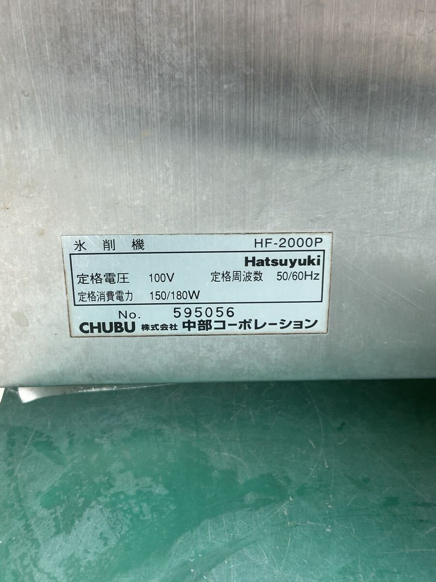 中部 CHUBU 氷削機 HF-2000 業務用 アイススライサー かき氷機 簡単動作確認済み現状