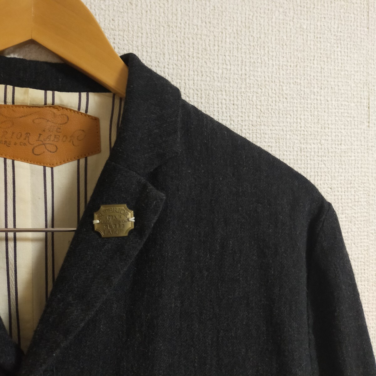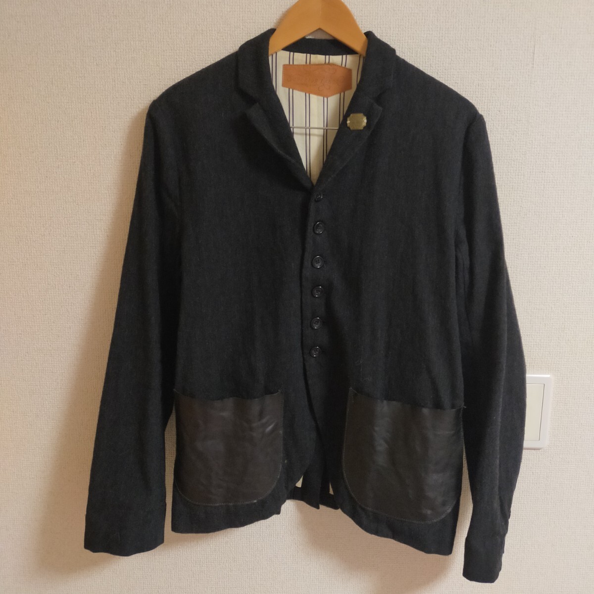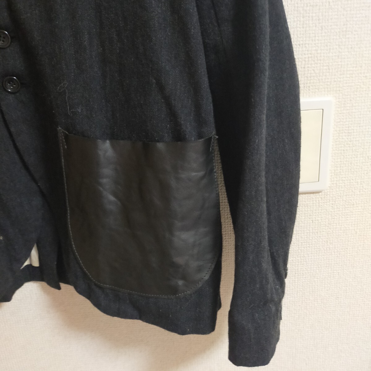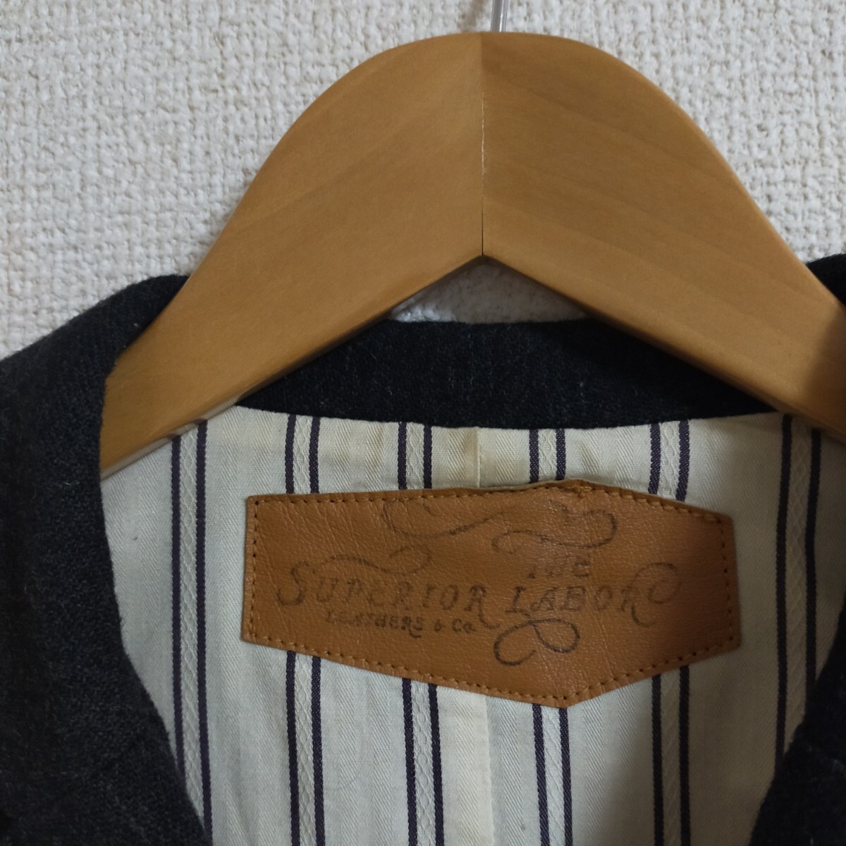 | THE SUPERIOR LABOR シュペリオールレイバー 多ボタン レザー切り替え テーラードジャケット ワークジャケット ウール S ブラック(黒) | |
