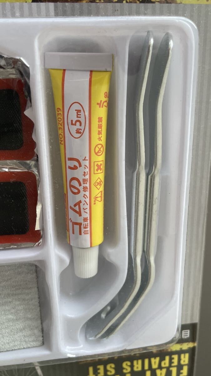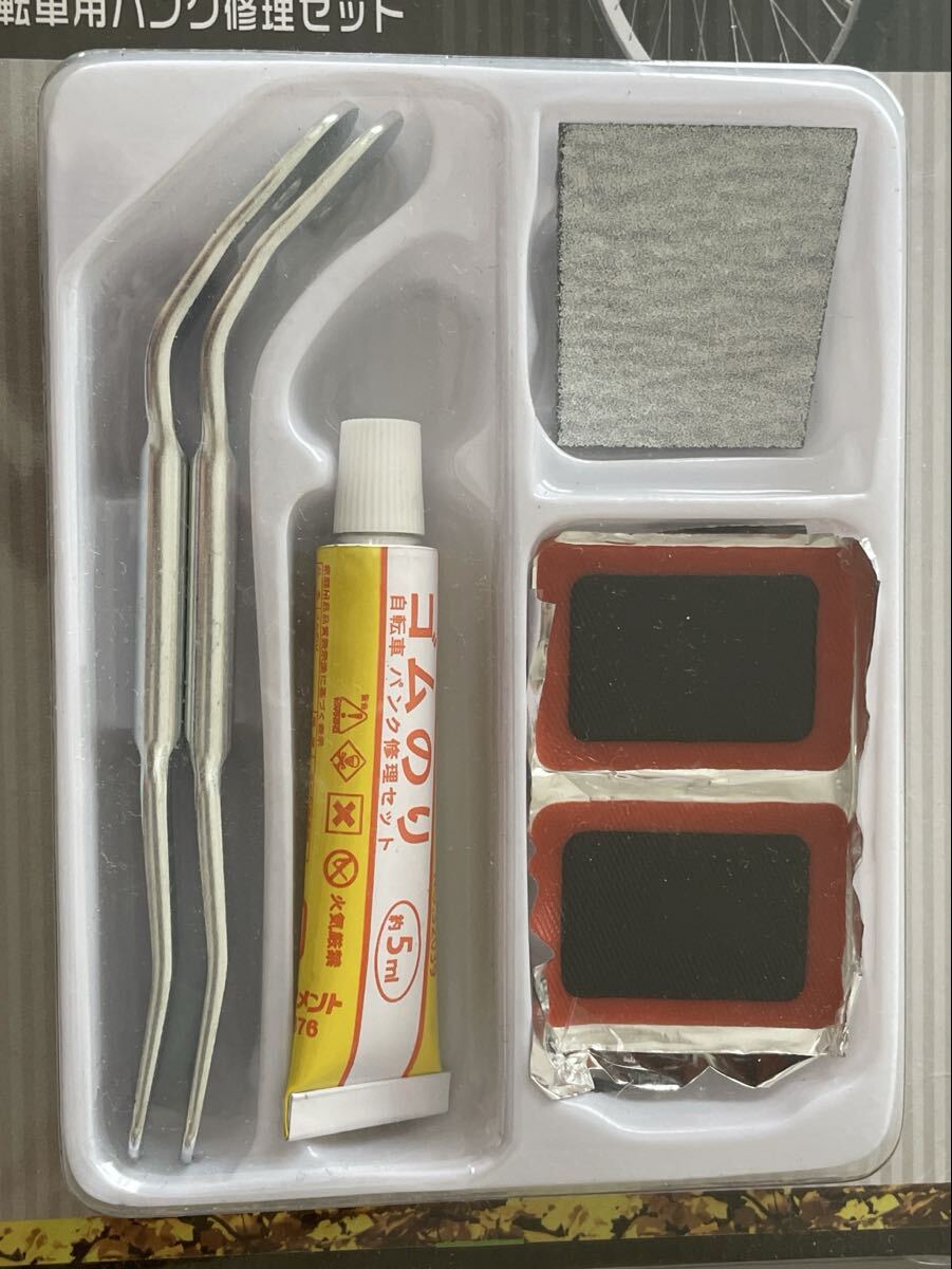 ・ゴムのり(ゴム補修剤): パッチをチューブに貼り付けるための接着剤です。