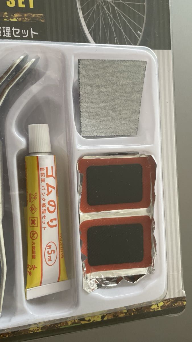 ・修理パッチ: パンクした穴を塞ぐためのゴム製のパッチです。