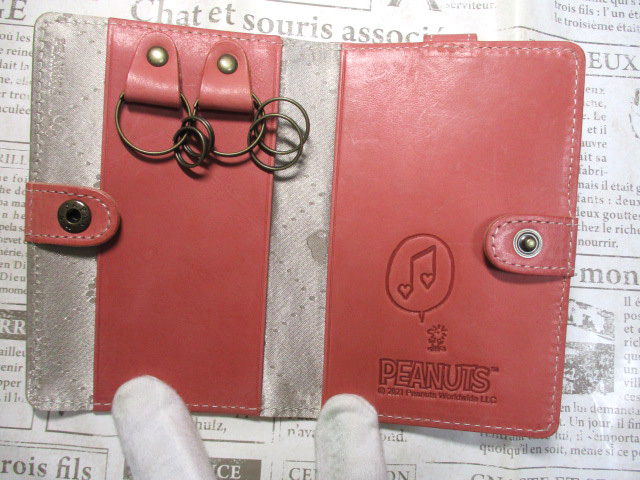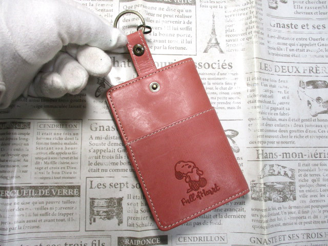 訳あり 新品 キーケース レディース スヌーピー ブランド パスケース カードケース スマートキー 本革 ビンテージ調 ピンク