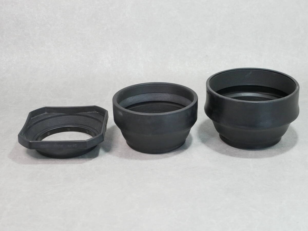 ☆蛇腹フードは77mm径のアダプター付です。ゴムフード3点は77mm径で一番大きいフードはASAHI製です。
