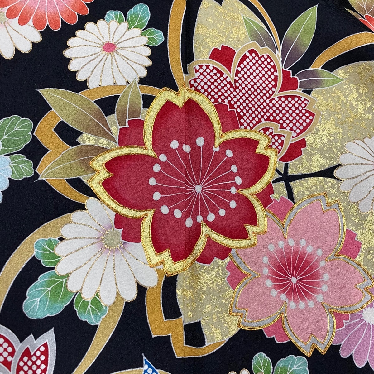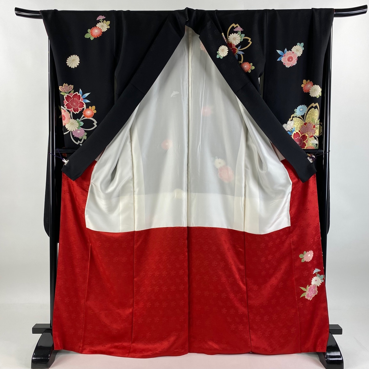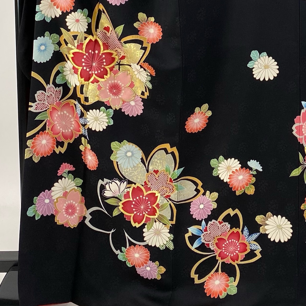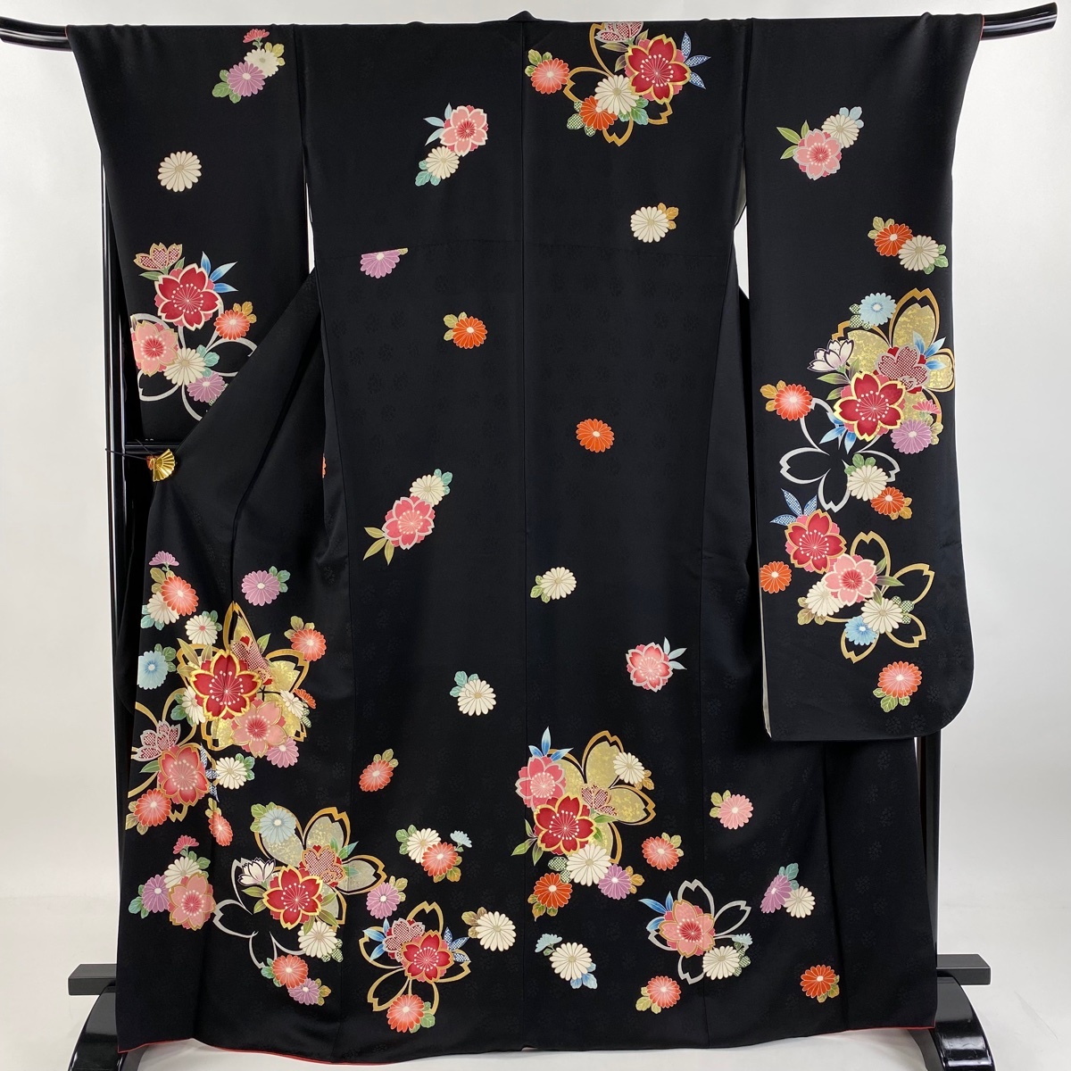 | 振袖 名品 桜 菊 金糸 金彩 黒 袷 身丈169.5 裄丈72 L 正絹 【中古】 |