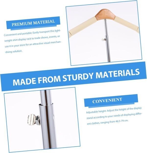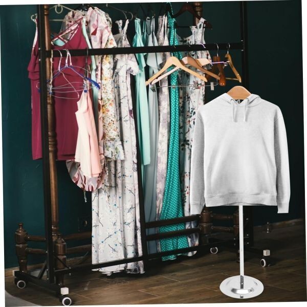 安定したT字型構造:重い衣類も傾かず、ディスプレイ効果が向上。