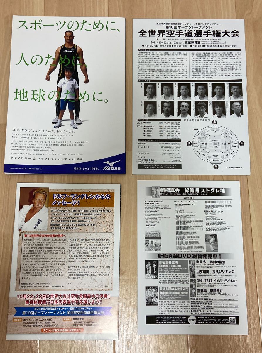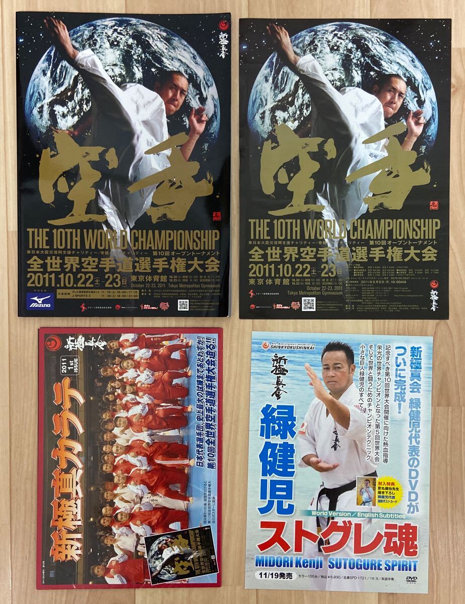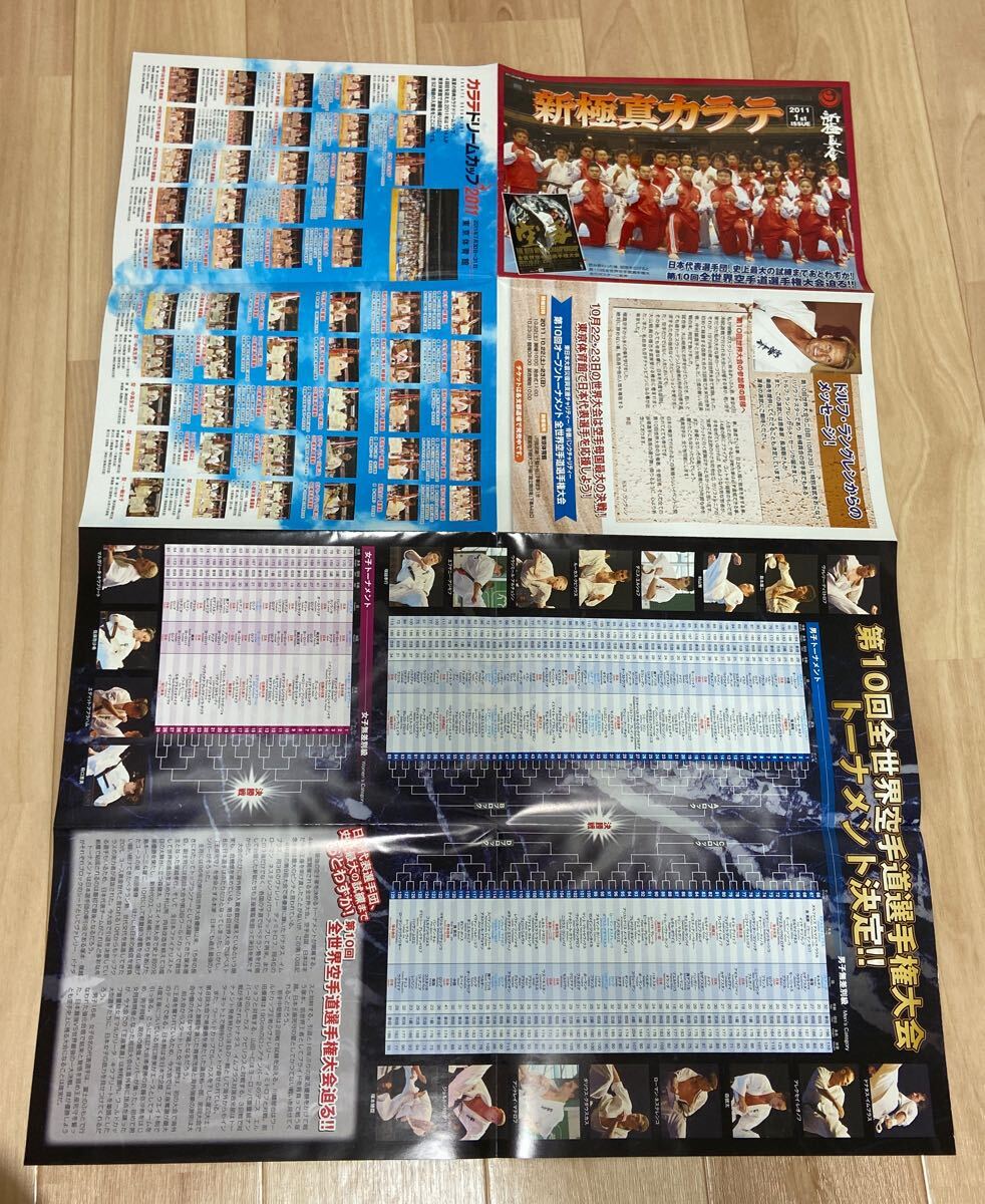 新極真 全世界空手道選手権大会のパンフレットとチラシとポスターのセットです。写真4枚目を広げるとトーナメント表になり、裏が大会ポスターになります(写真5、6枚目)送料は当方で負担いたします。