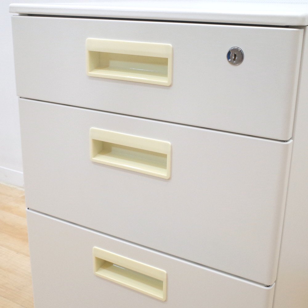 シンプルな3段ワゴンが入荷いたしました。お色味はホワイトです。 凹凸の少ないスッキリとしたデザインで、場所を選ばないシンプルワゴン。 オフィスデスクの下に設置できる便利収納ワゴン。事務小物からA4ファイルまで段に分けて仕訳けられる事務ワークの強い味方です。 ※写真で掲載の商品そのものが届くとは限りません。複数入荷した中の1点を掲載している場合がございます。 |