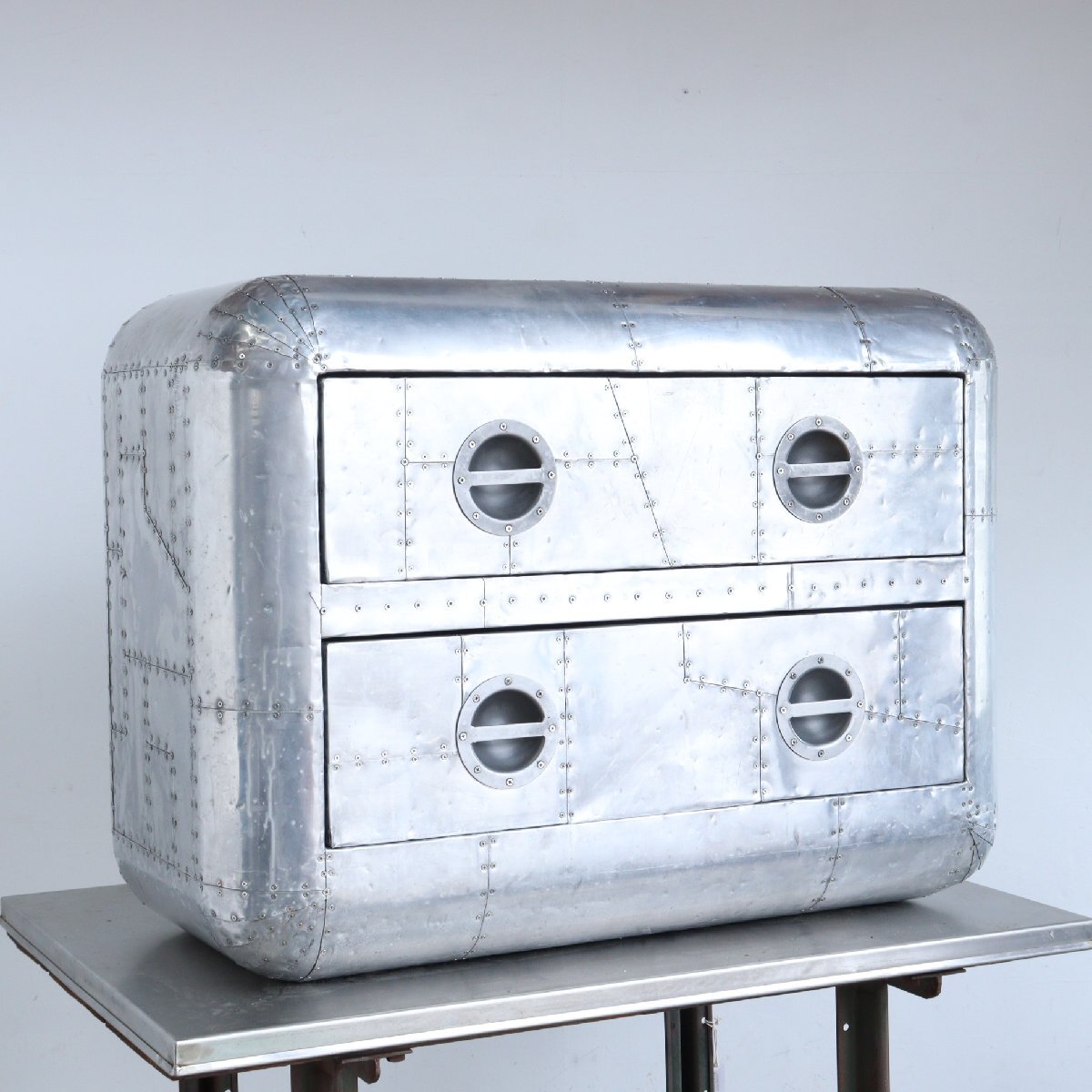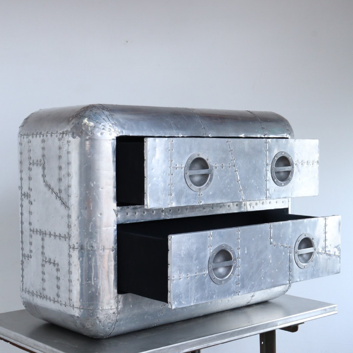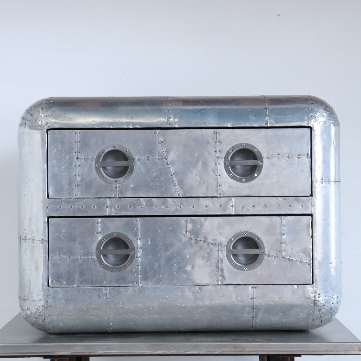 | 商品説明 explanation | アメリカで使用されていた、イギリスの家具ブランド【TIMOTHY OULTON】ヴィンテージの2段チェストです。 アビエーター ブラックホーク コレクションの一つで イギリスの戦闘機【スピットファイア】とアメリカの軍用機【ブラックホーク】 をモチーフにデザインされたモノです。 丸みを帯びたフォルムにアルミパネルが何枚も重ねられています。 実用はもちろん、ディスプレイするだけで雰囲気がでるアイテムです。 店舗やご自宅にいかがでしょうか。 ※作業台に乗せた状態で撮影しています。 |