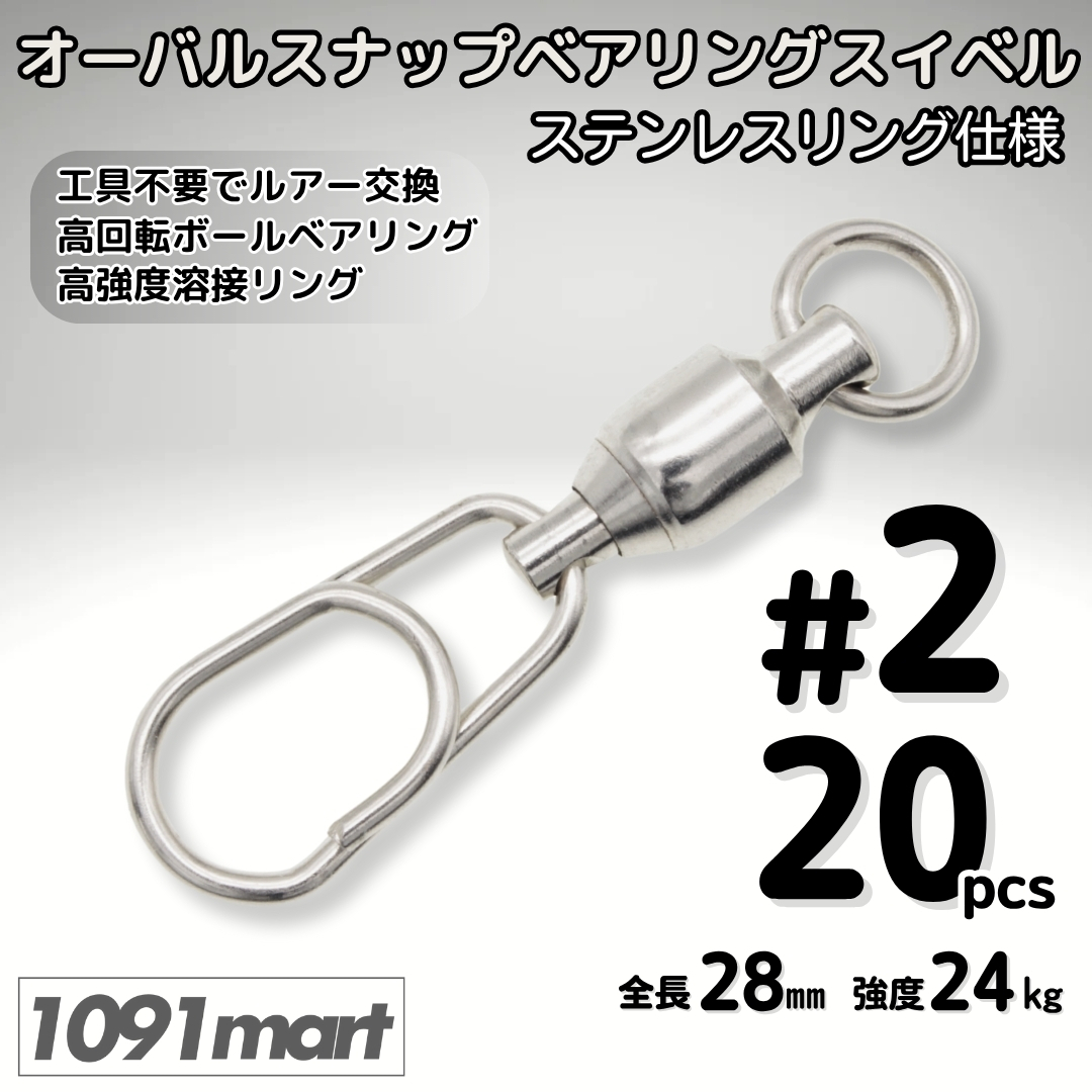 オーバルスナップベアリングスイベル #2 20個セット ステンレス製溶接リング ジギング 青物 オーシャンスナップタイプ【1091mart】