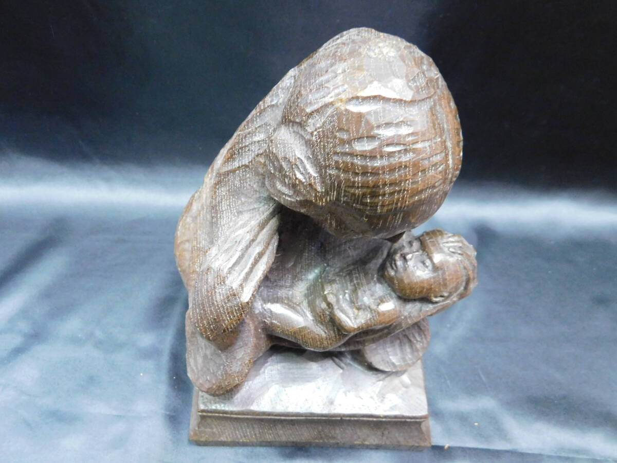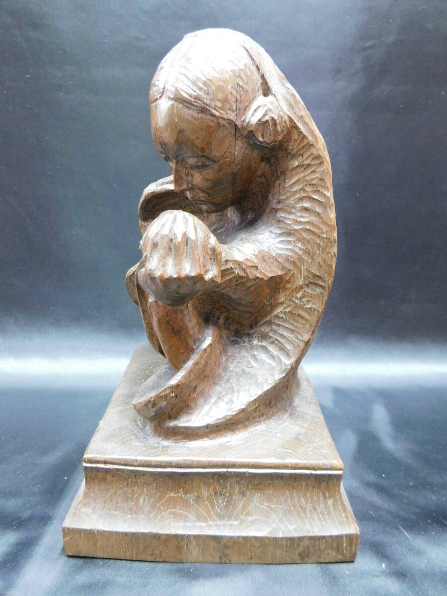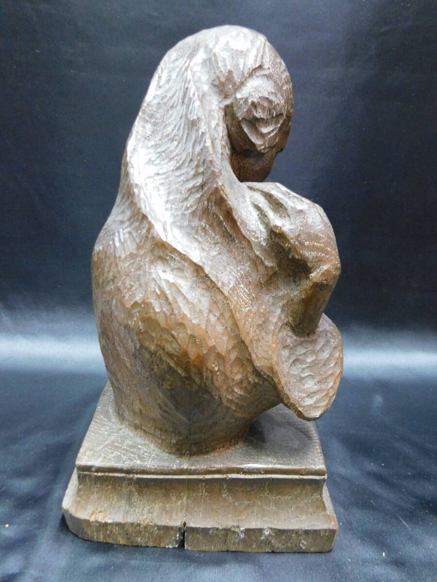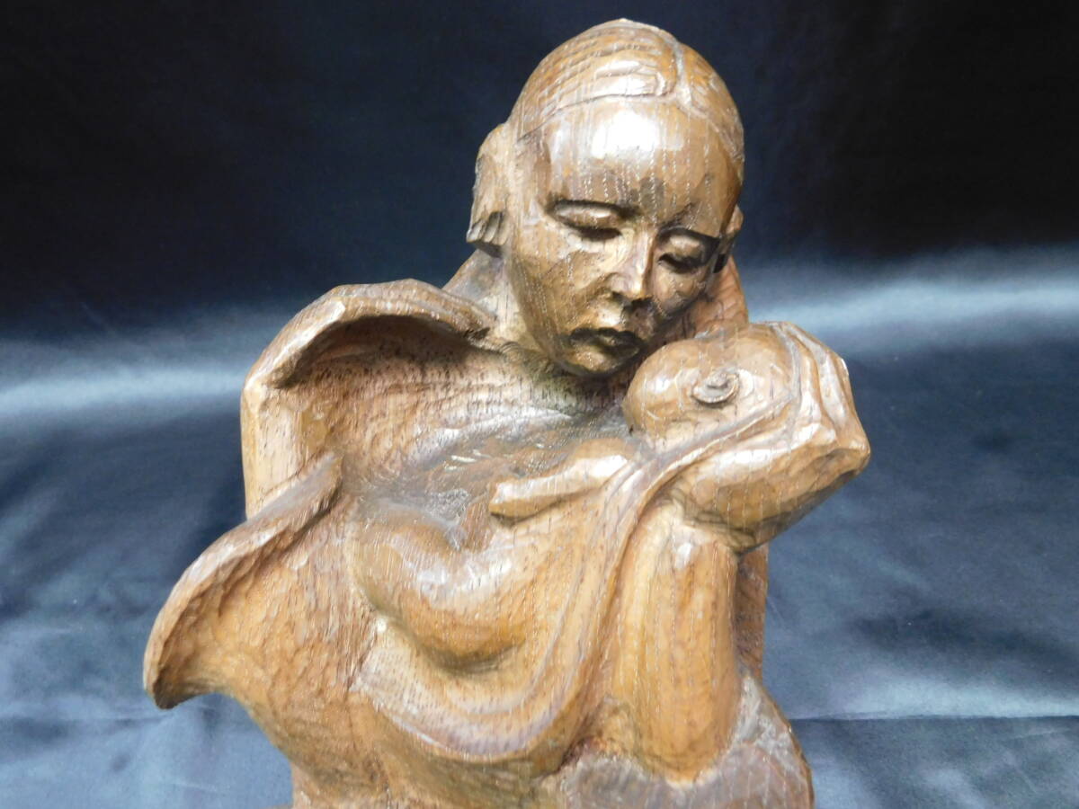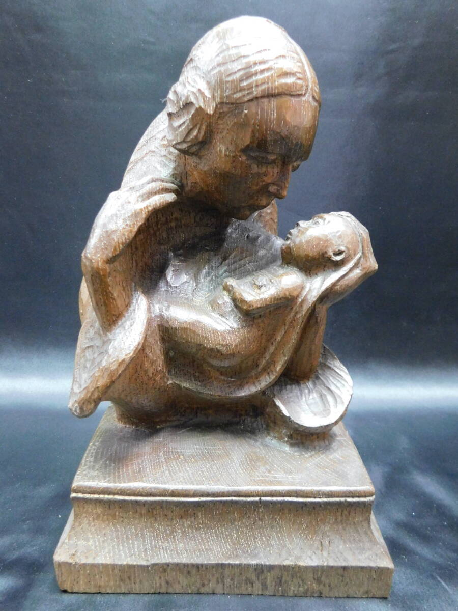 【コレクター放出 ヨーロッパ アンティーク】木彫り聖母 1922 赤子を抱いた女性像 母子 /K714