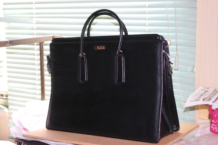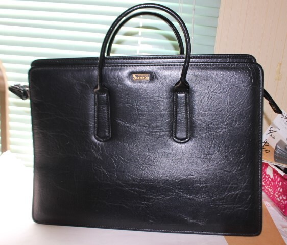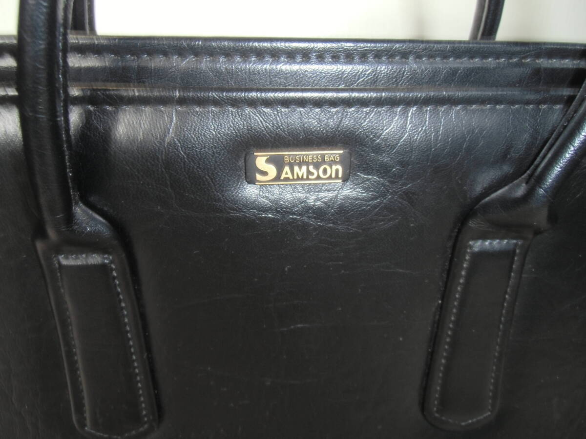 ▲け-13 ビジネスバック <SAMSON> 鍵1個付き 中仕切り兼クラッチバック1個 革製 黒系 中古 高さ38cm最大幅41.5cmマチ15cm
