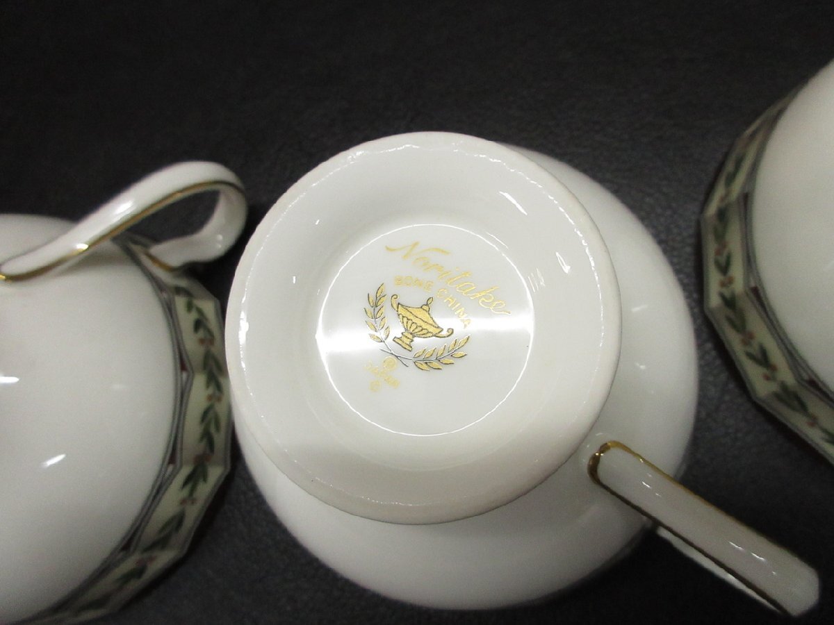 【WS-1712】Noritake カップ ソーサー ノリタケ Born China 金彩 グリーン柄 金彩 洋食器 現状品 同梱可【千円市場】