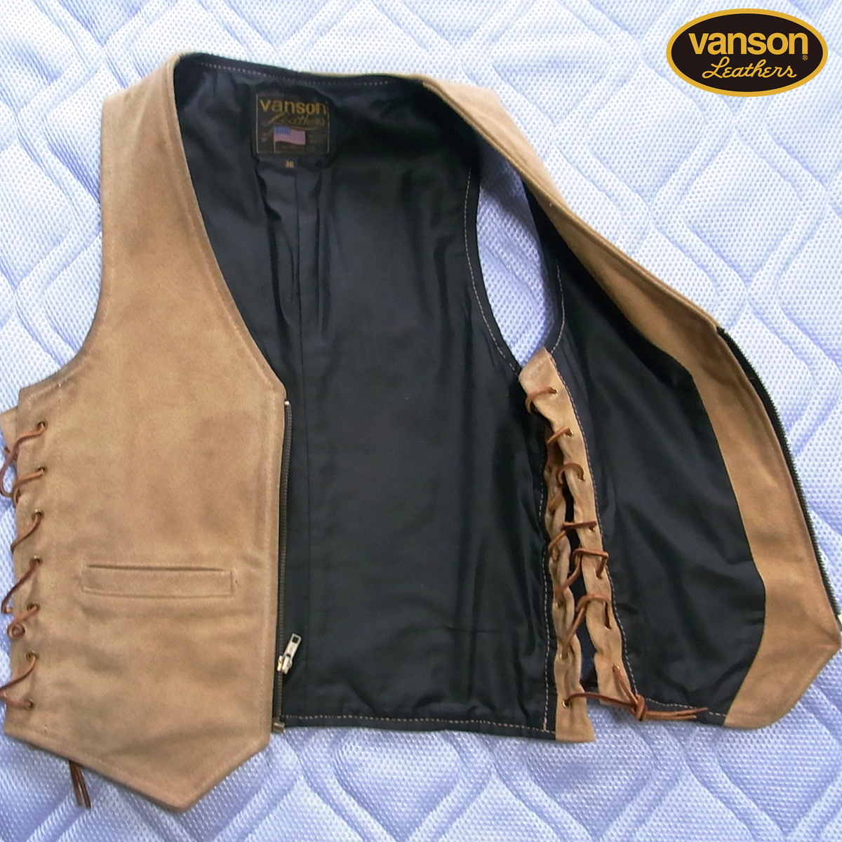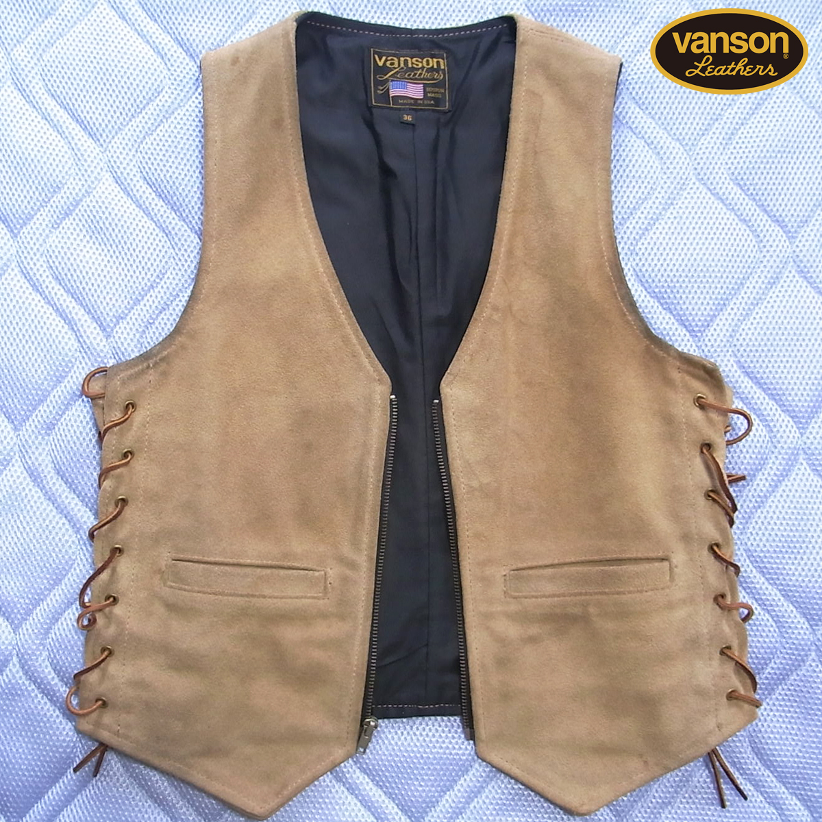Vanson バンソン レザーベスト サイドレース MADE IN USA LENZIP アメリカ製