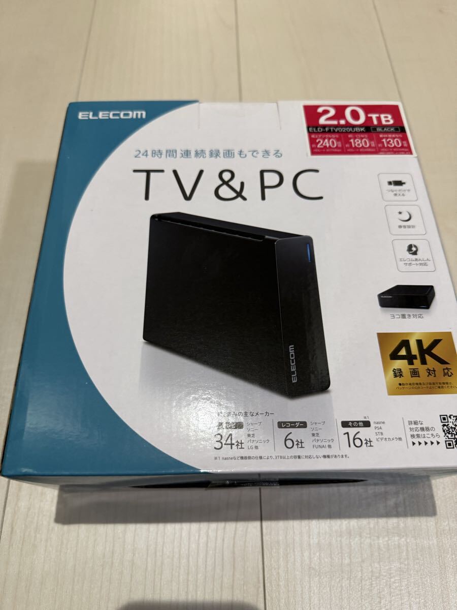 ELECOM テレビ録画用ハードディスク 2TB ELD-FTV020UBK エレコム ELECOM