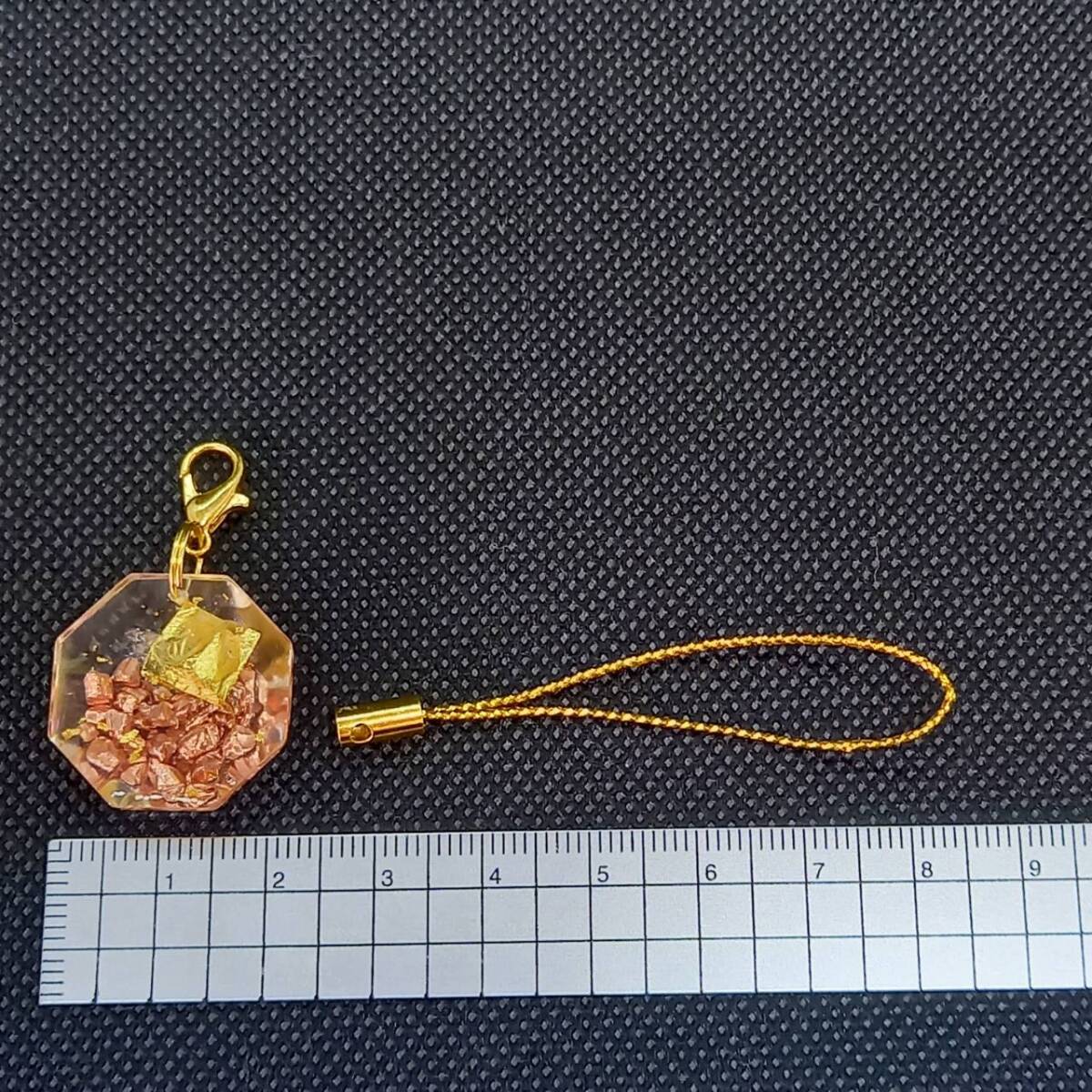 【数量限定お試し版】金運風水八角形オルゴナイト 金運60倍ストラップ22mm【金運アップの招金堂】金運財布 レジンアートキーホルダー/2106