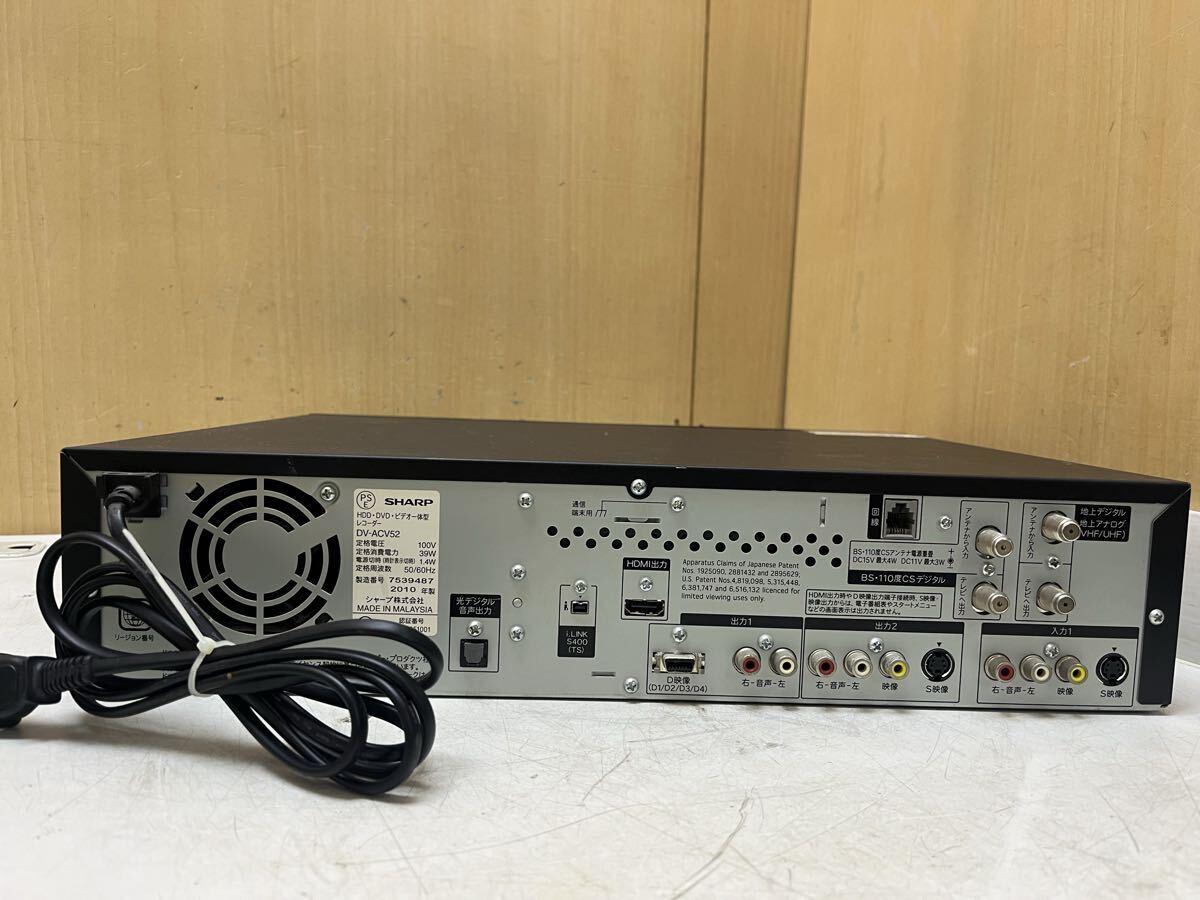 RE7811 SHARP シャープ ビデオ一体型DVDレコーダー AQUOS DV-ACV52 DVD/HDD/VHS再生確認済 リモコン欠品 現状品 1010