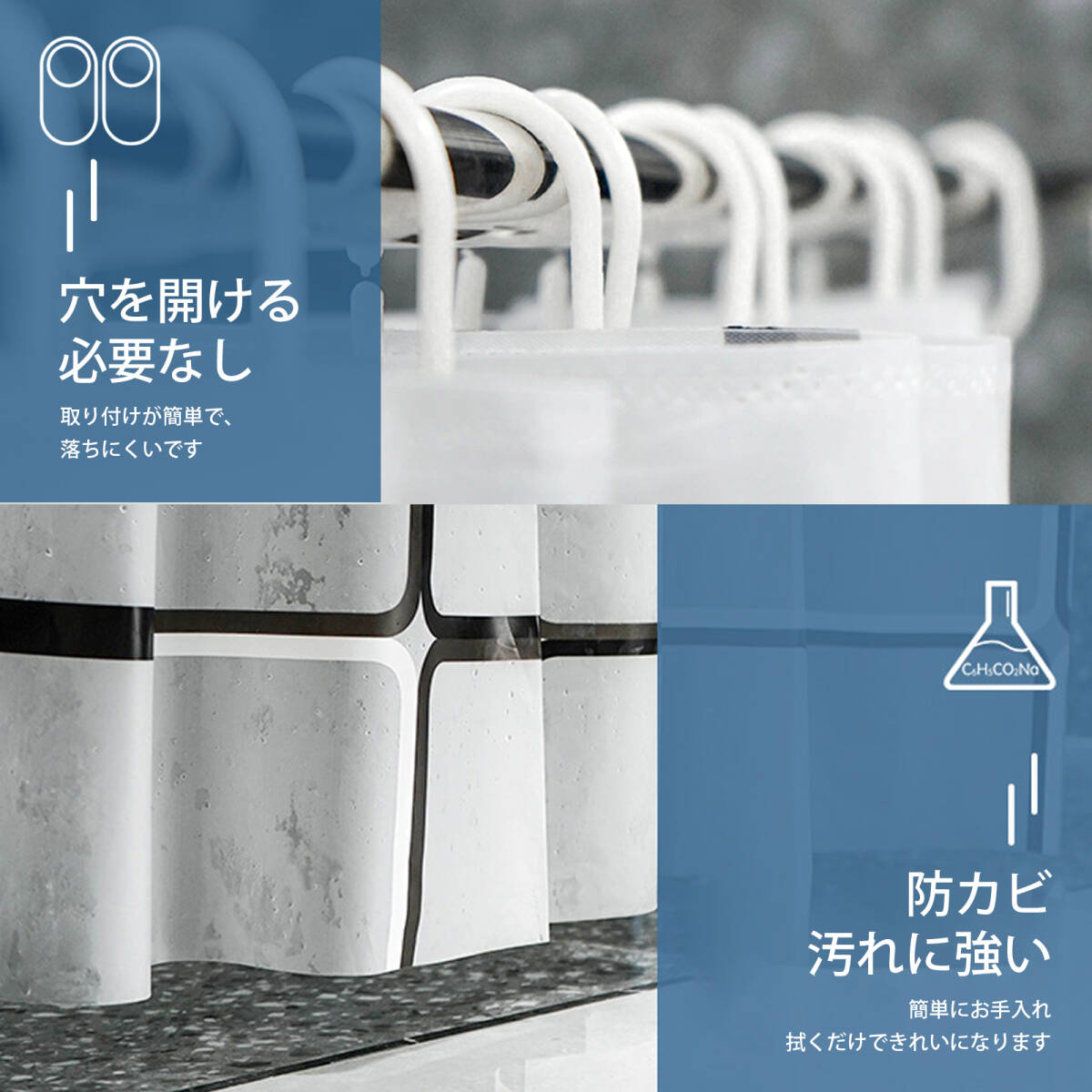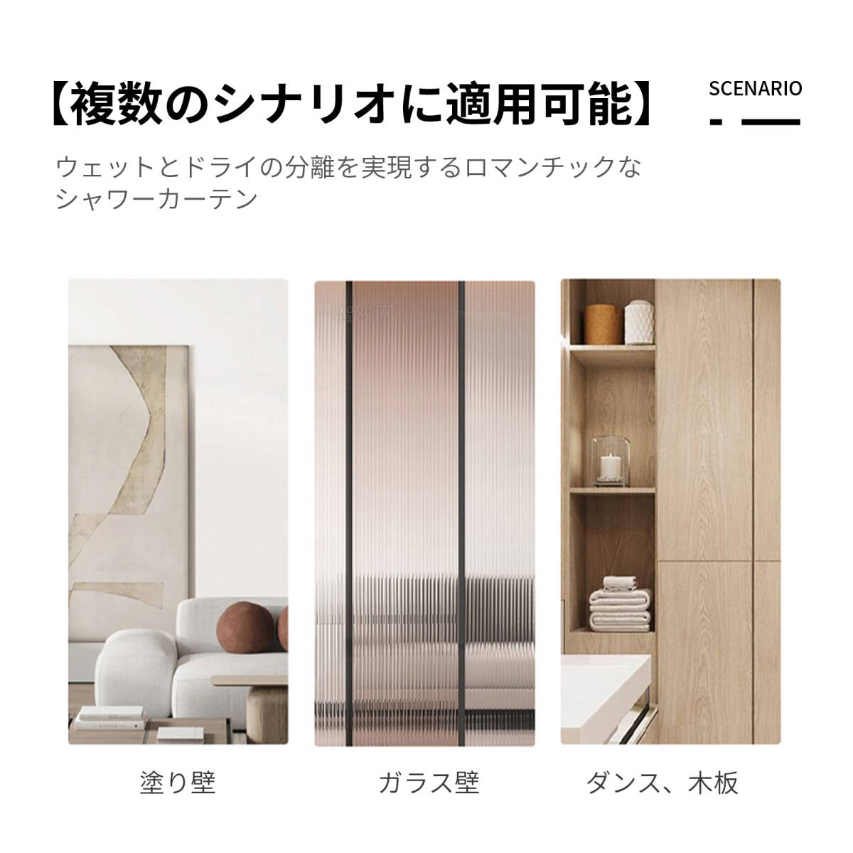| 適合シーン | 浴室・トイレの間仕切り、ロッカールーム、子供部屋、キッチンとリビングの間仕切り、収納ラックの防塵カーテン、ユーティリティルームカーテンなど |