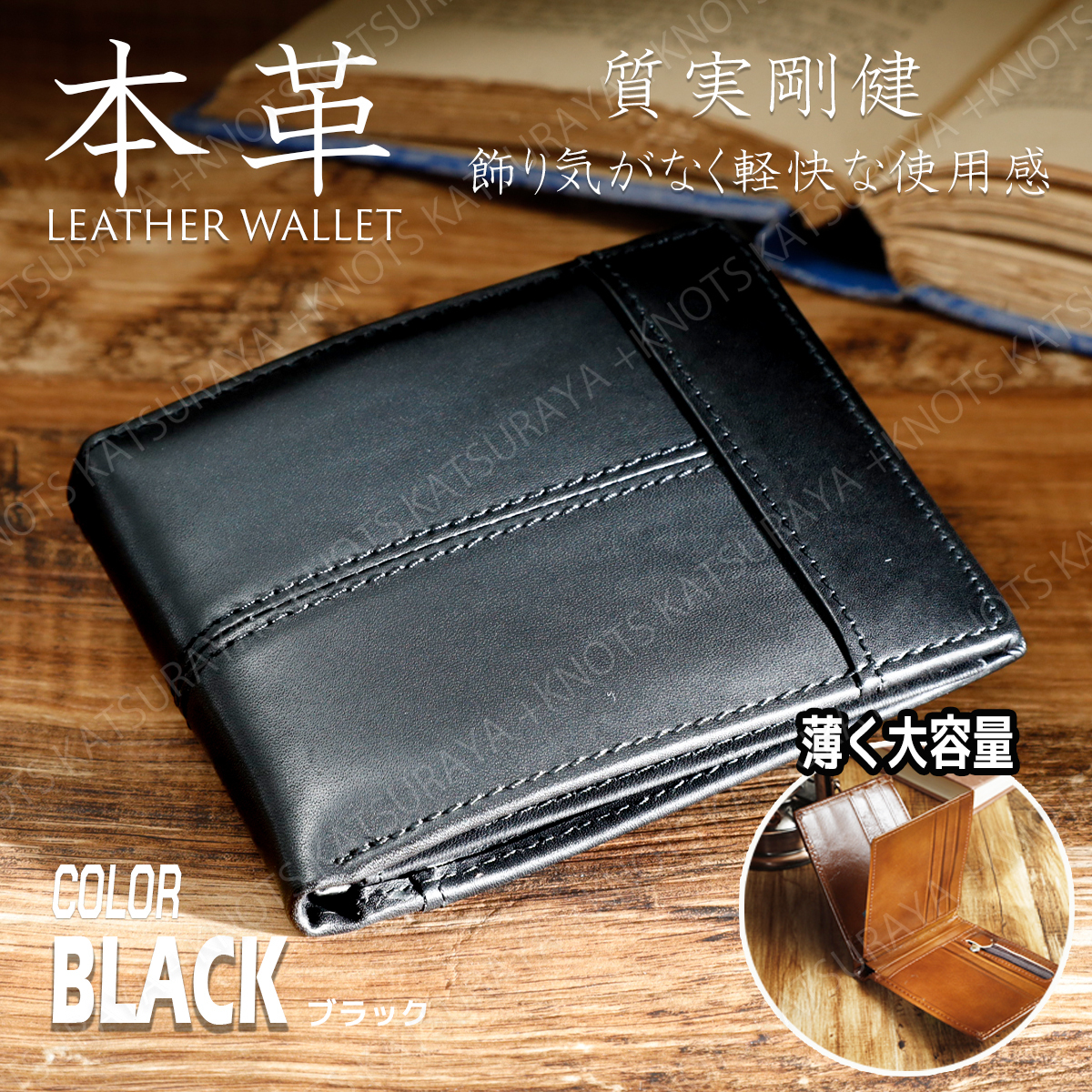 本革 二つ折り財布 メンズ★ブラック黒★小銭入れ付き シンプル レトロ ふたつ折り 牛革 レザー ミニ財布 小型財布 小さい財布a449