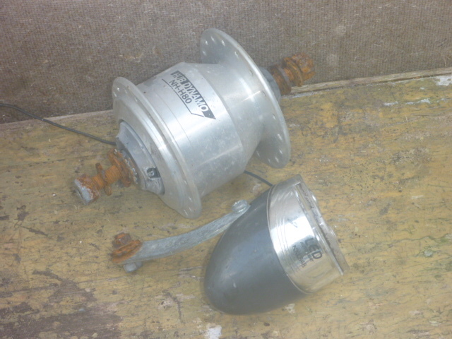 | ★商品説明★ | ★携帯からご覧の方及び発送料を聞く方がいらっしゃいますが送料等発送情報等下にありますので最後までよくお読み下さい。 ★評価の悪い方及び新規の方のご入札は1度質問コーナーよりご連絡下さい。 ご連絡の無い方のご入札はイタズラ・トラブル防止の為此方の判断で削除する場合がありますご了承下さい。 ★宅配便発送分及びゆうパックの場合必ずお読み下さい★ ※集荷・配達不可地域につきましては、予告無く変更となる可能性がございます。 お急ぎの方、遅延にご理解いただけない方は入札ご遠慮ください。ご落札の方には、 状況が判明次第ご連絡をさせていただきます。 大変ご迷惑をお掛けいたしますが、ご了承の程よろしくお願い申し上げます。 ★バイクや自転車・車の部品は消耗品です。完全クレーム対応致しません。保証等お考えの方はお店で整備された物を ご購入下さい。現状販売です。(現状販売の意味の判らない方はご遠慮下さい。) ★商品の詳細は文字では説明出来ない部分が有ります。ごくまれに、説明文に無い等アゲアシ取りをされる方 や神経質な方は、ご遠慮下さい。ご入札は良くお考えの上宜しくお願い致します。 ★動作確認済み。 ★27インチのホイールから取り外しました。 ★スポークの長さ:26インチの場合約27cmのスポークが要ります。 ★スポークの長さ:27インチの場合約29cmのスポークが要ります。 ★スポークの長さ:28インチの場合約29cmのスポークが要ります。 ★ロックナット(エンド)幅:100mm。実寸ですので、若干の誤差はご了承ください。 ★ライト切れの無いLEDライトです。 ★ライト:AUTO LIGHT NKL 848 LED。焼け・くもり・キズ・シミ・メッキ剥がれ有り。 ★ダイナモ:HUB DYNAMO NH-H80。スポークを入れる所サビ有り。キズ・サビ有り。 ★ネジ類:サビ大ですのでおまけとお考え下さい。要らない方は落札の際お申し付け下さい、外してお送り致します。 ★スポークを入れる駒数36です。 ★このままでは使用出来ません。取り付けは専用のスポークが必要です。 ご自身の駄目になったダイナモのホイールがあればそのスポークで張替は可能です。 ★スポークを張り替えて実際に自転車に取り付けるときの注意点を下記に記します。↓ ★取り付けのコツは締めすぎず緩すぎず車輪が違和感無く回る様に取り付ければ大丈夫です。 ゴリゴリ音があれば締め過ぎです、その時はライト点灯しません。 ★前輪を締めるコツですがナットに負荷がかかりきつくなった時1回又は2回程クッかクックッとご自身が負荷が かかる状態がだいたい10kg前後ぐらいの最良な締め付け具合です。 これを覚えると家電・タイヤ交換等回して締める物は大抵大丈夫です。(全般に保証している物では有りません) ★自転車・車バイクの様に不安が有る物は外れたら怖いと過剰に力が入り結構きつく締める場合が 心の中で知らず知らず生まれます。お気を付け下さい。 ★一番判る判断テストは上下逆さま(反対にして)で車輪を指で軽く回します。 その時ゴリゴリに締めますとカックンカックン・1マスメ~2マスメ間隔等に カカクンカカクンと車輪の負荷がかかり上手く回らない車輪が止まる状態が締めすぎです。 早く・強く回すと判りづらいです。ユックリとお願いします。 ★正常は指で軽く回しますと普通に違和感無くスーット車輪が回ります。 その際明るい内はライトのセンサー部分の本体後に携帯のカメラ部分のような窓が有りますのでここを押さえ光を センサーに関知させないで行うと点きます。 ★結構敏感で精密な部分ですのでビニールテープの黒かガムテープ・黒の布等で塞がないと関知して明るい内は 点灯しません。夜であればそのままで点灯します。 ★大事な事ですがホイール(ダイナモ)とライトの線がちゃんと繋がっていなければ付きませんお気お付け下さい。 ★LED以外稀にライトの中にある銅版にライトが接触してなければ球を交換しても付きませんので銅版を軽く曲げて 球に接触するようにして下さい。球は消耗品ですので切れている時は交換して下さい。対応は致しません。 ★テストはスチールのフロントフォークでしておりますアルミ等特殊な物は点かない可能性が有りますので ネット・自転車屋さん・判る方に聞いた上でご入札お願い致します。その際安易に落札され点灯しない等 一切返品・返金等対応致しませんのでご了承頂いた方のみ宜しくお願い致します。 ★全体に年相応のサビ・キズ有ります。 ★発送は記載されているのみです。他の発送は不可になります。梱包代を含んだ金額になりますので、 ご理解頂いた方のみご入札下さい。実際の重量とは異なります。 ★割れ欠け見当たりませんが細かい部分は未チェックですので大事な部分はご質問で確認して下さい。 ★質問で確認のない欠け割れ部分は対処致しませんのでお気を付け下さい。 ★全体にキズ・シミ・サビ等有ります。部品取り・塗装等してお使い下さい。 ★評価の悪い方及び新規の方のご入札は1度