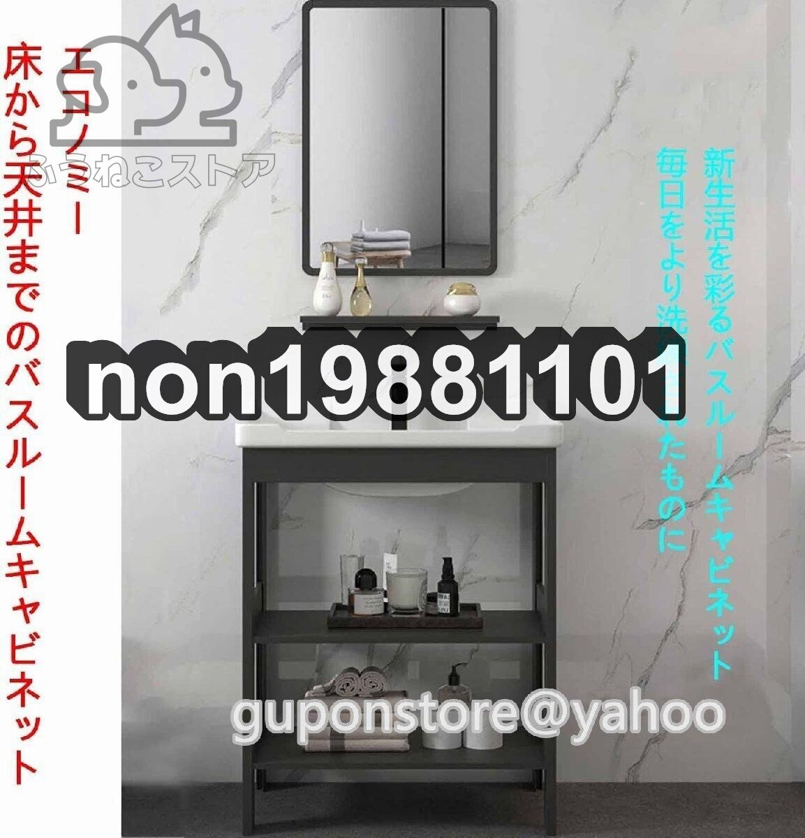 商品詳細 ●商品未使用 商品名:洗面化粧台、洗面化粧台、扉なし床置き型キャビネット 商品カラー:ジェントルマンズブラック/ホワイト 洗面ボウル素材:セラミック キャビネット素材:スペースアルミ 選択可能なミラー:スクエア、ラウンド オプションキャビネット:フロア
