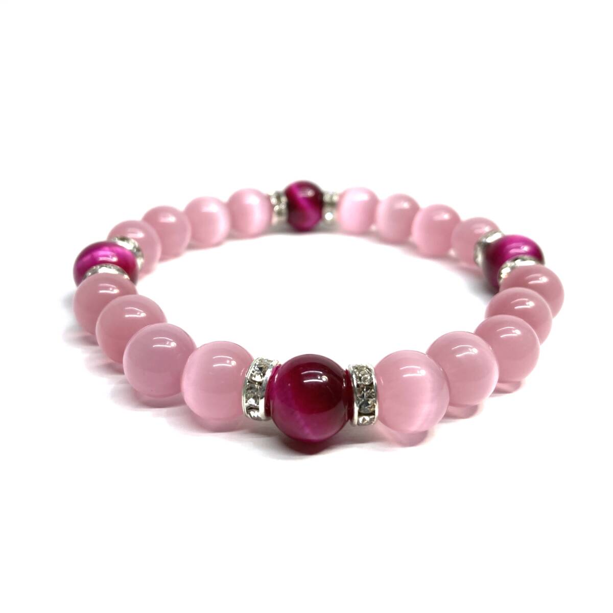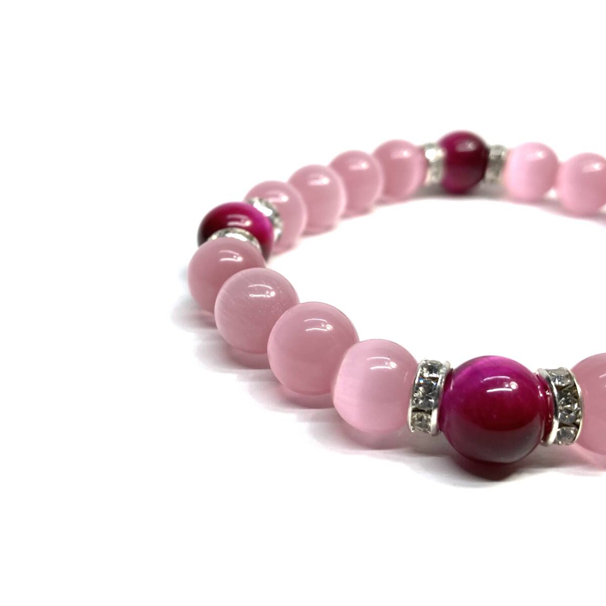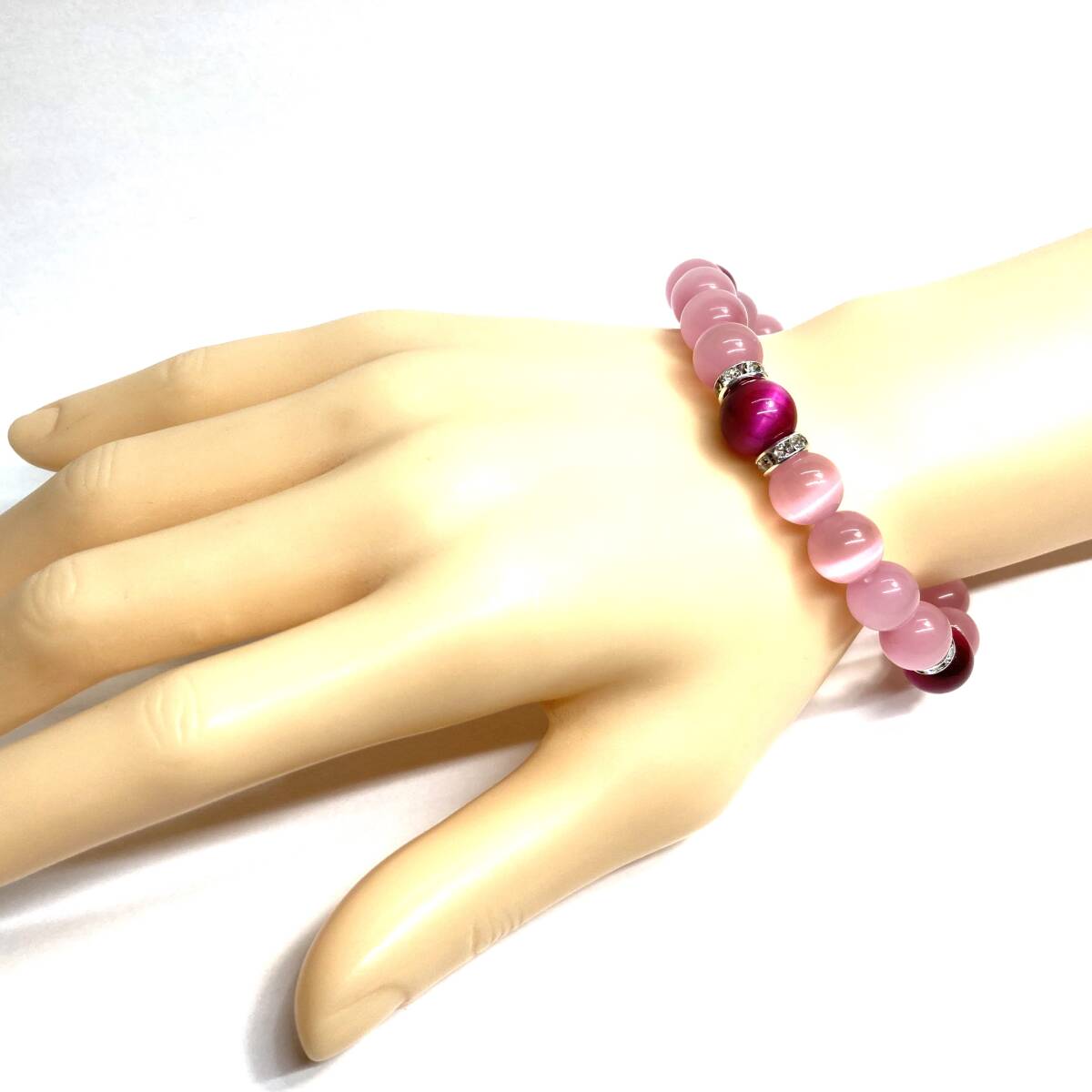キャッツアイ(ピンク)×ピンクタイガーアイ パワーストーン ブレスレット(シルバー ) 10mm 数珠ブレス メンズ・レディース 男性