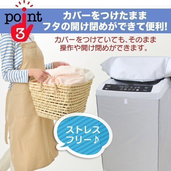 蓋部はファスナーとマジックテープで開閉できるので、カバーを脱着せずに洗濯機を使えます。