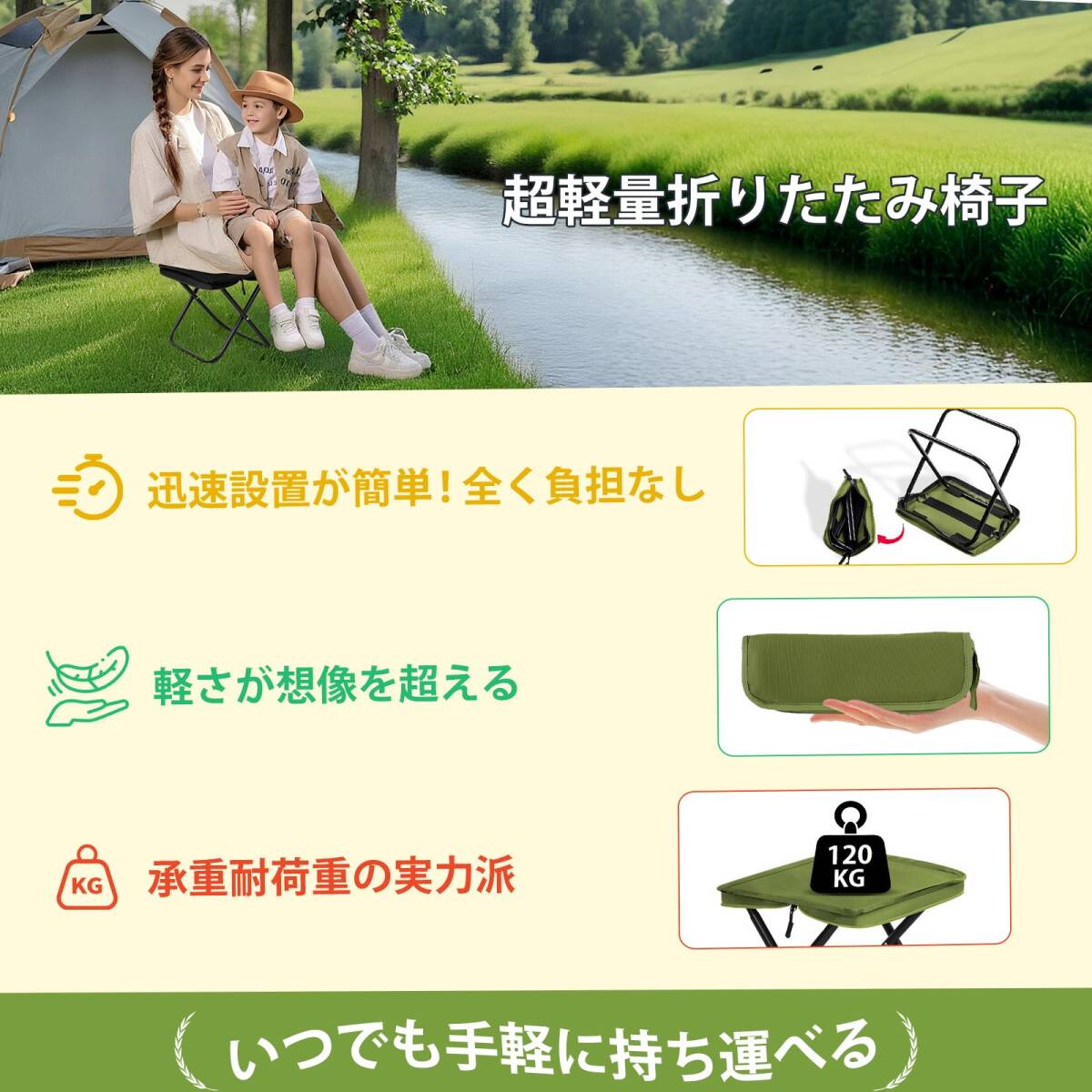 折りたたみ椅子 アウトドアチェア 超軽量 携帯チェア コンパクト 持ち運び便利 耐荷重 120kg キャンプ 旅行 ハイキング 試合観戦に最適