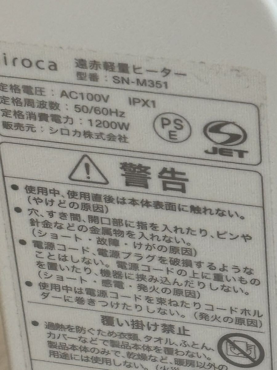 シロカ 遠赤軽量ヒーター かるポカ SN-M351(W) [節電モード新搭載/コード長50センチ増加/軽量4.8kg/乾燥しにくい/最大10畳対応/遠赤外線/タイマー設定可/]
