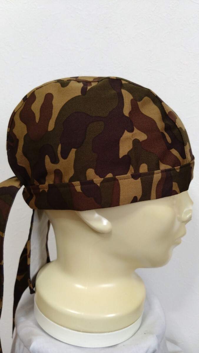 ★バンダナキャップ★ハンドメイド 迷彩 カモフラ 茶 ブラウン
