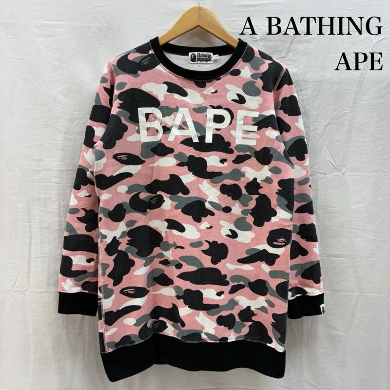 アベイシングエイプ BAPE ロゴ プリント カモフラ クルーネック スウェット トレーナー 0010PF702502X S