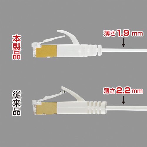 ※配送の送り主はサンワサプライ(株)と記載されています。沖縄・離島配送不可となります。 当店は正規販売代理店です。 特長 カテゴリ5eの6.0倍、カテゴリ6の2.4倍の伝送帯域である600MHzをクリアします。帯域が広いほど高速伝送が可能になり、データエラー防止効果があります。 ケーブル品質とプラグ内のより戻しを極限まで押さえることにより、実用化が急速にすすんでいる10GBASE(10Gbps)に完全対応します。 ※米国FLUKE社DTX-1800(firmware1.1)での測定による。テストテーブル使用でプラグ部分の検証済み。 薄さ1.9mmで取り回しが簡単です。カーペットの下や細いすき間にスッキリ配線できます。 また、ケーブル内部をモールド加工しているので、ケーブルのよりが戻りにくく、性能特性が落ちません。 プラグのツメ(ラッチ)が折れるのを防ぐ、ツメ折れ防止カバー付きで安心です。 サビや酸化被膜の発生を抑え、高精度の接触を保証する金メッキシールドプラグを採用しています。 ケーブルの素材に火災の延焼原因になりにくい素材を使用しています。 気をつけておりますが、タイミングによっては在庫切れの場合があります。 ※ギガビット接続については、接続する他の機器・ケーブルが全てギガビットに対応する必要があります。 仕様