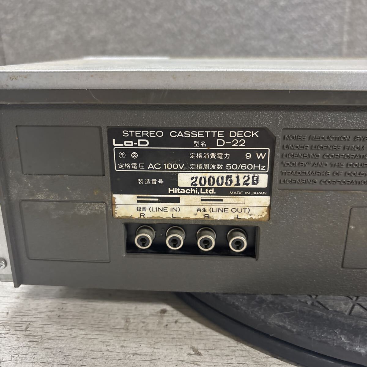 KD11-185 激安 カセットデッキ HITACHI D-22 STEREO CASSETTE TAPE DECK 簡易動作確認済み 中古現状品